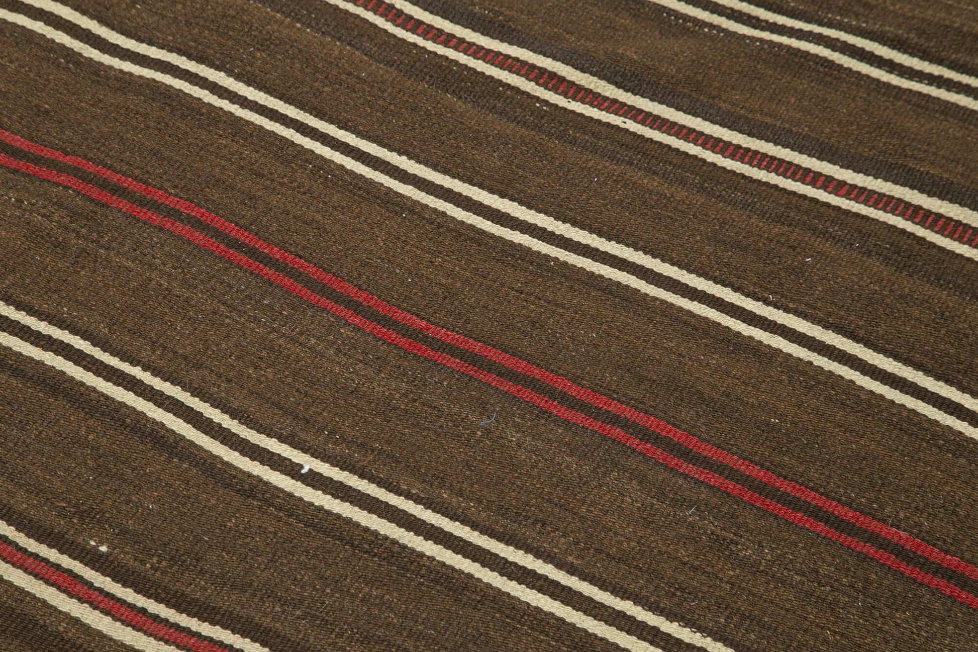 Handmade Area Rug - Anatolian Kilim Brown Striped Cotton Wool Carpet 3'6''x6'5''