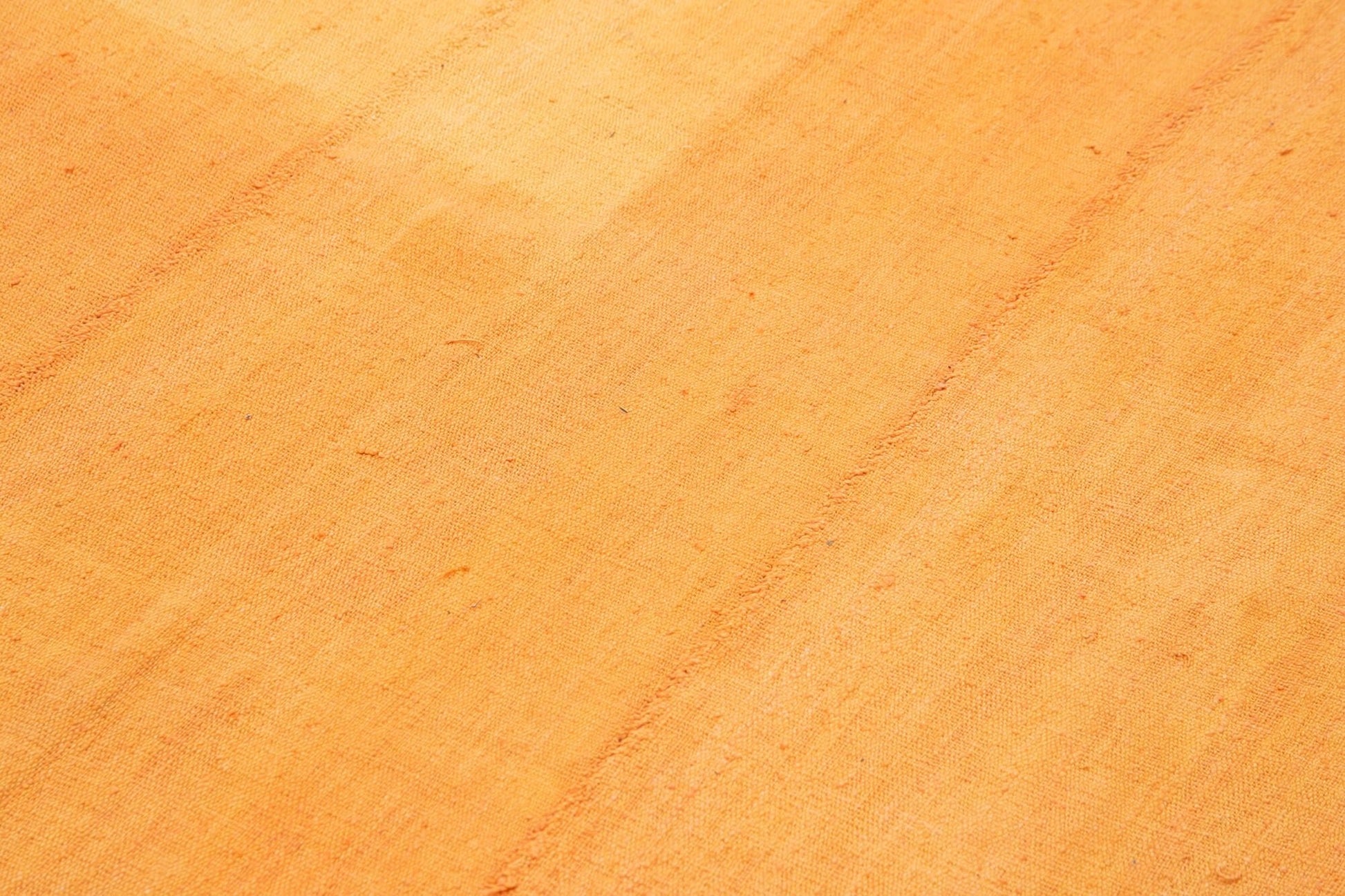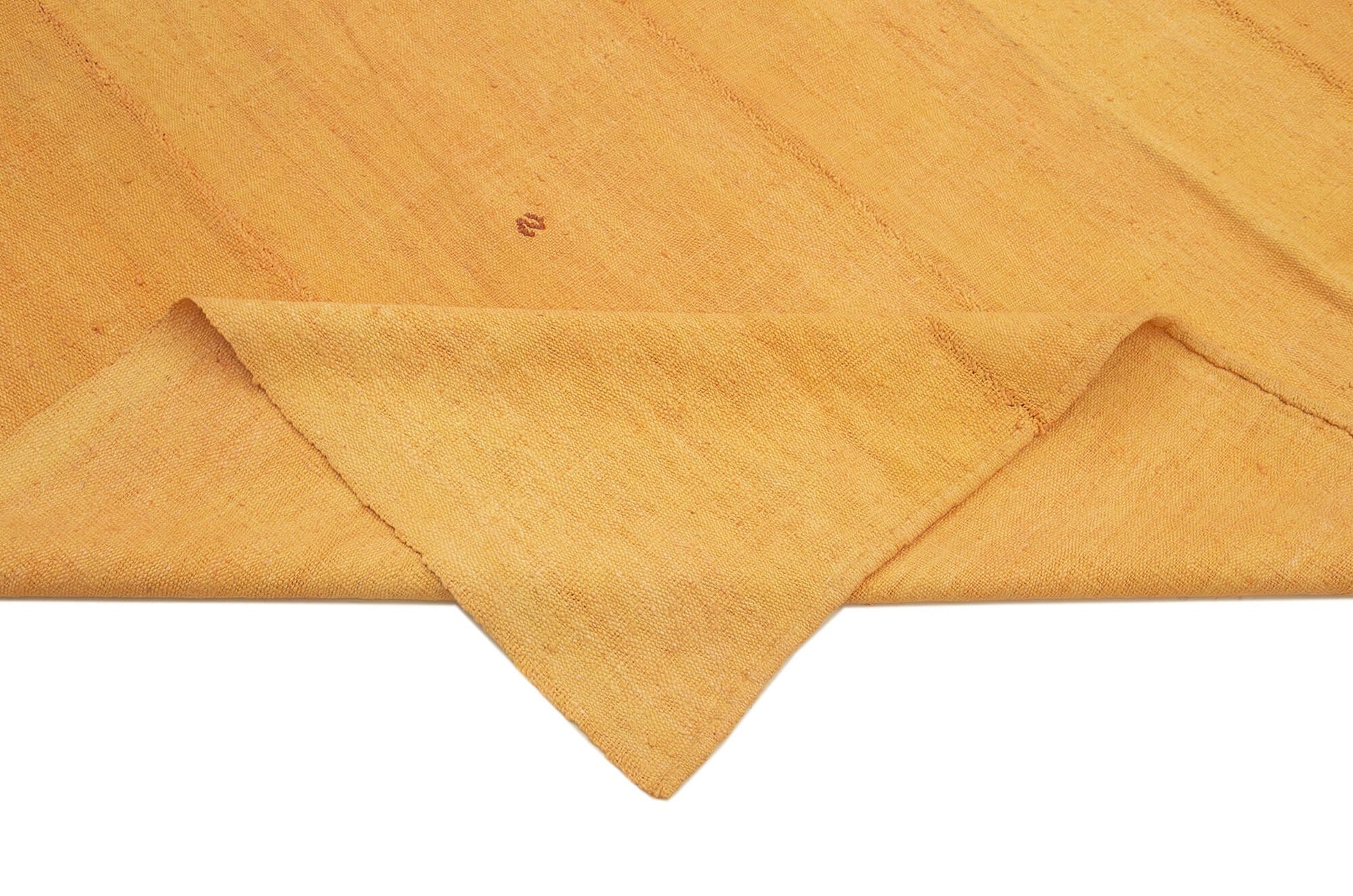 This handmade area rug is a stunning Anatolian Kilim yellow striped cotton wool carpet measuring 7'x11', perfect for adding warmth and style to your living room. Crafted as a traditional hand knotted, hand woven rug, this vintage Turkish carpet features a wool cotton blend that offers durability and softness. The natural fiber rug is carefully selected, cleaned, and washed using special techniques to neutralize and subtly alter its original colors, resulting in a colorful striped carpet that enhances any bohemian style carpet collection.