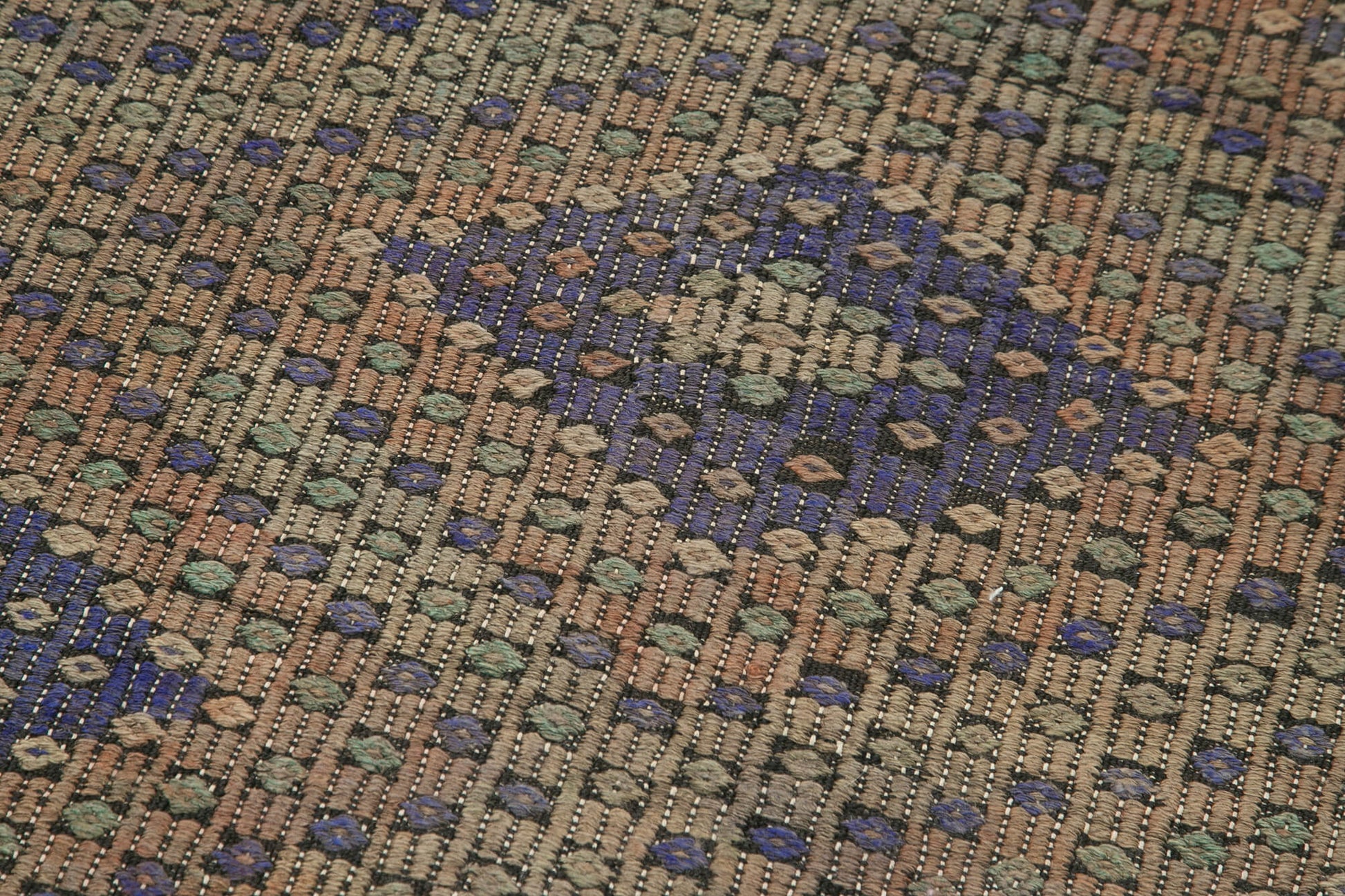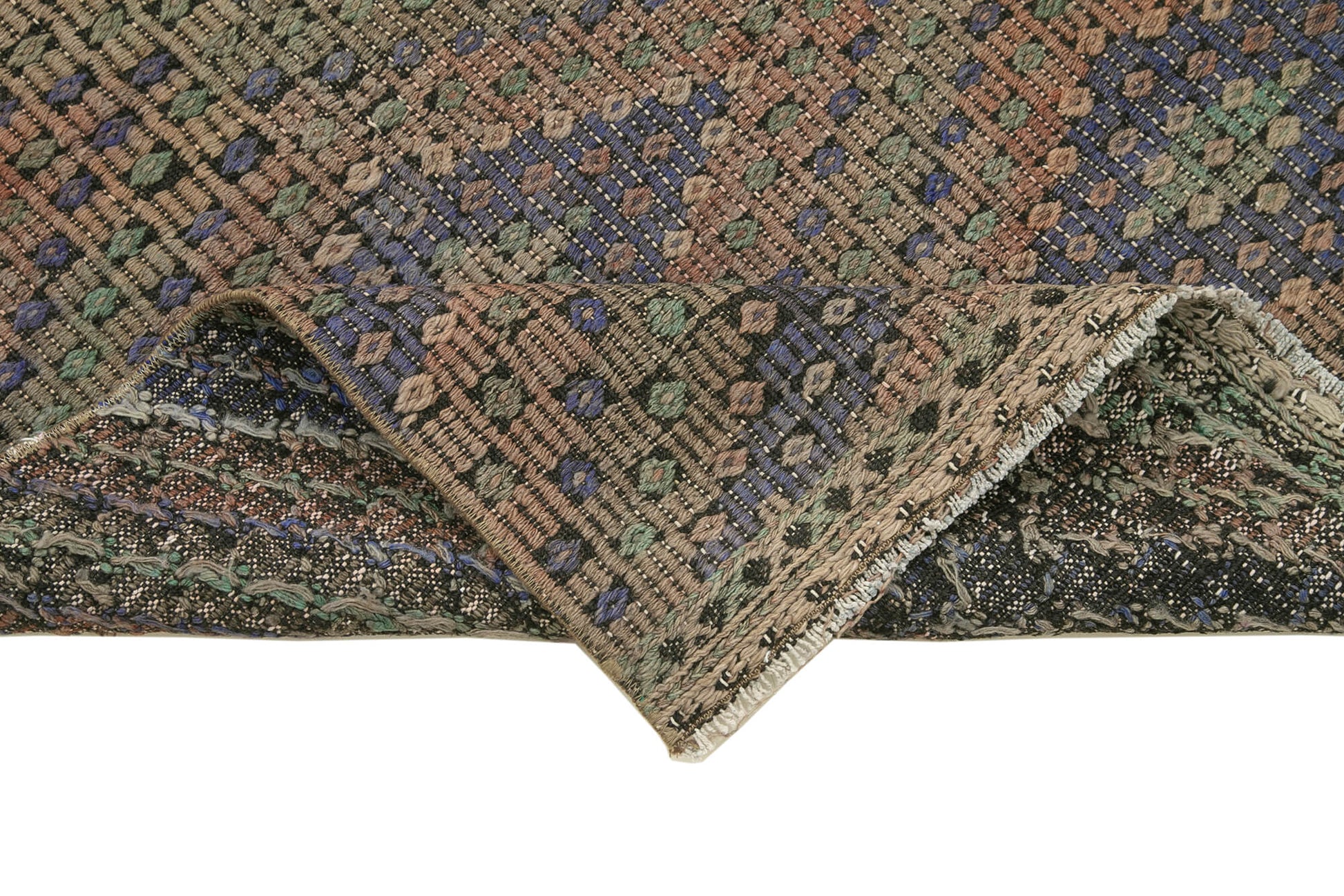 Every vintage handwoven rug undergoes thorough cleaning and washing to ensure colorfastness and freshness. The traditional techniques used maintain the classic woven style while offering a unique texture that only a handmade area rug can provide. This durable cotton carpet is ideal for high traffic areas due to its robust materials and expert craftsmanship.