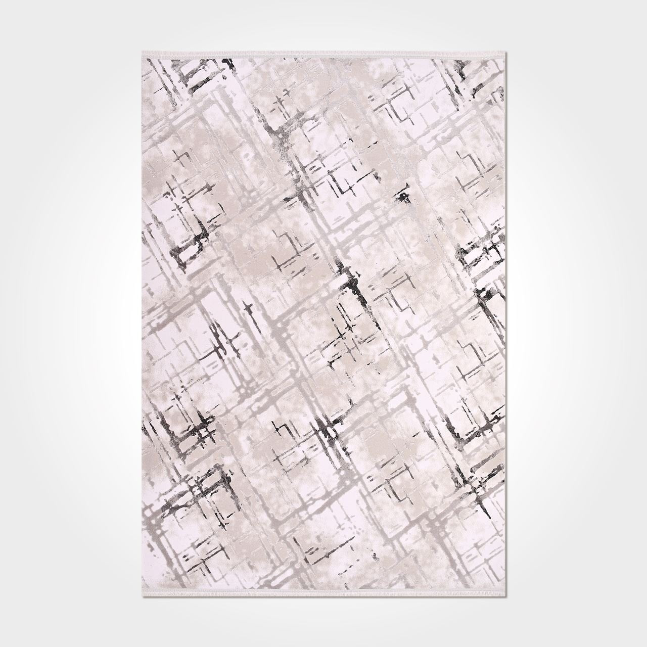 Grey Geometric Area Rug - Machine Made Cotton Base Rug with 12mm Pile Height