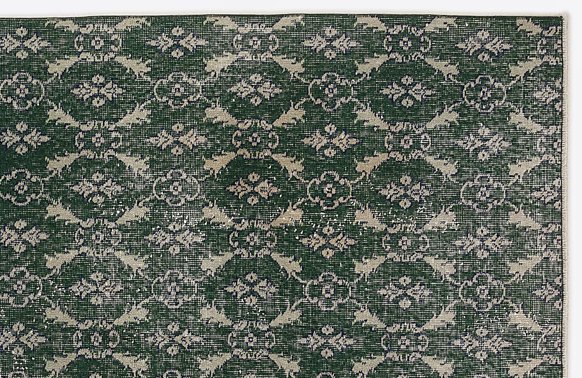 Atina Green Vintage Wool Handmade Area Rug 4'8" x 8'3"