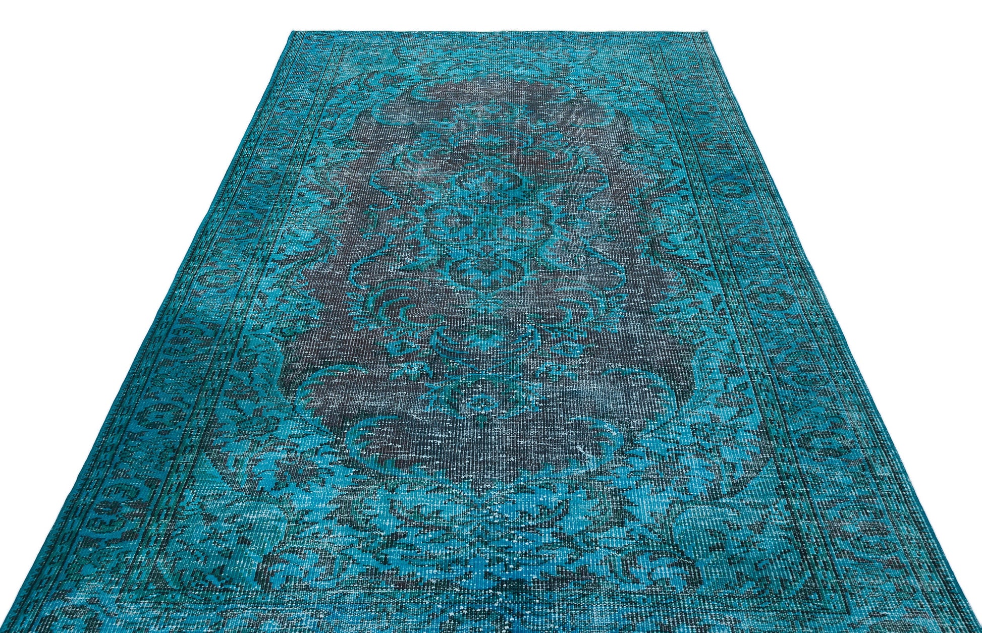 The Atina Turquoise Vintage Wool Handmade Area Rug 5'9" x 8'6" is a stunning vintage wool area rug designed to bring warmth and timeless style to your living space. Crafted from natural wool, this handmade wool rug offers both softness and durability, making it an ideal soft wool floor covering for high-traffic areas. Each Anatolian wool carpet is handwoven in Turkey using traditional techniques dating back to the 1960s and 70s, ensuring a unique and authentic piece that enhances vintage home decor.