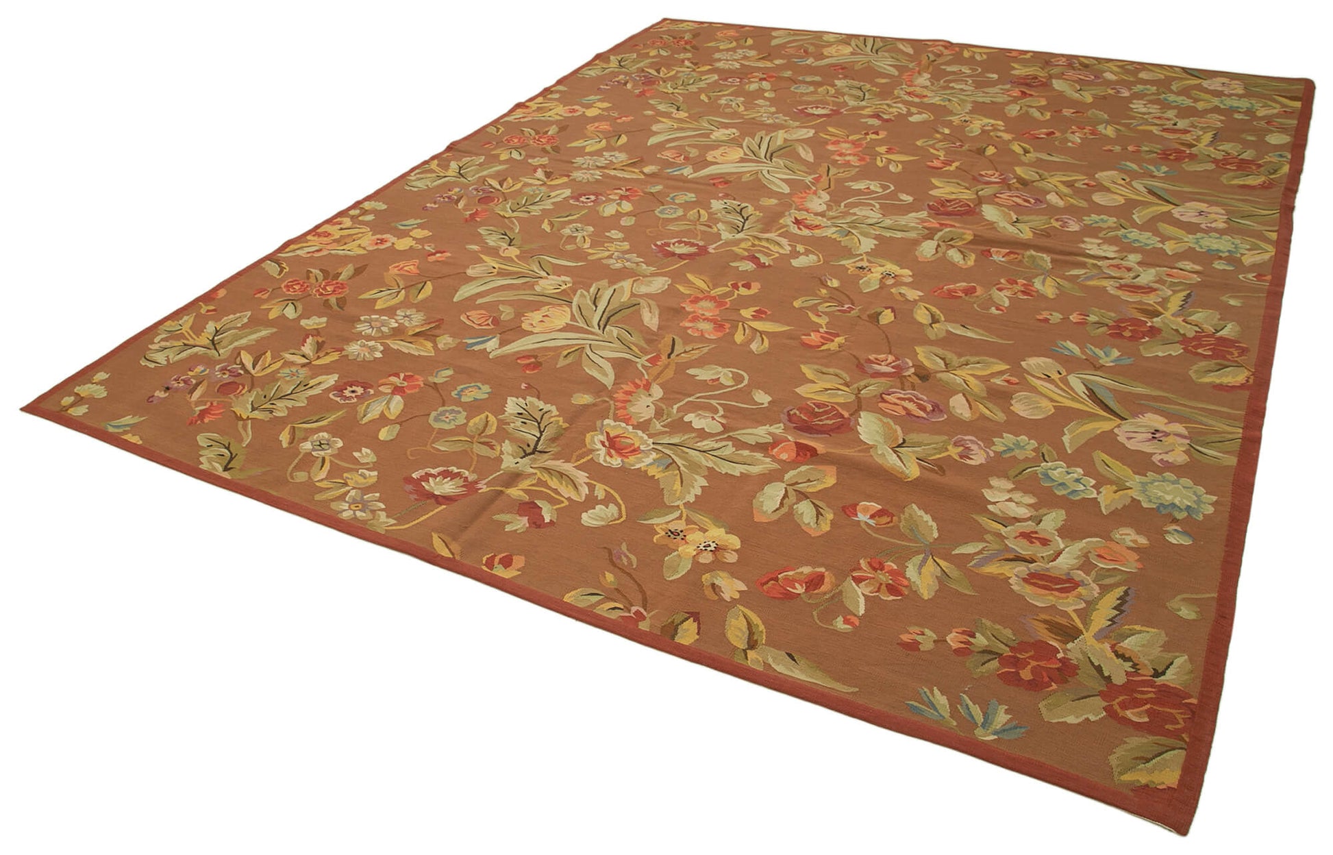 Handmade Area Rug – Brown Floral Cotton Wool Vintage Hand Woven Carpet 9'2"x11'7"