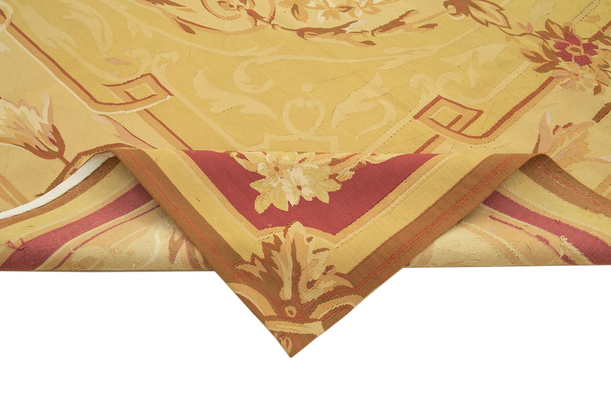 Handmade Area Rug - Yellow Floral Cotton Wool Vintage Turkish Carpet 8'9''x11'9''