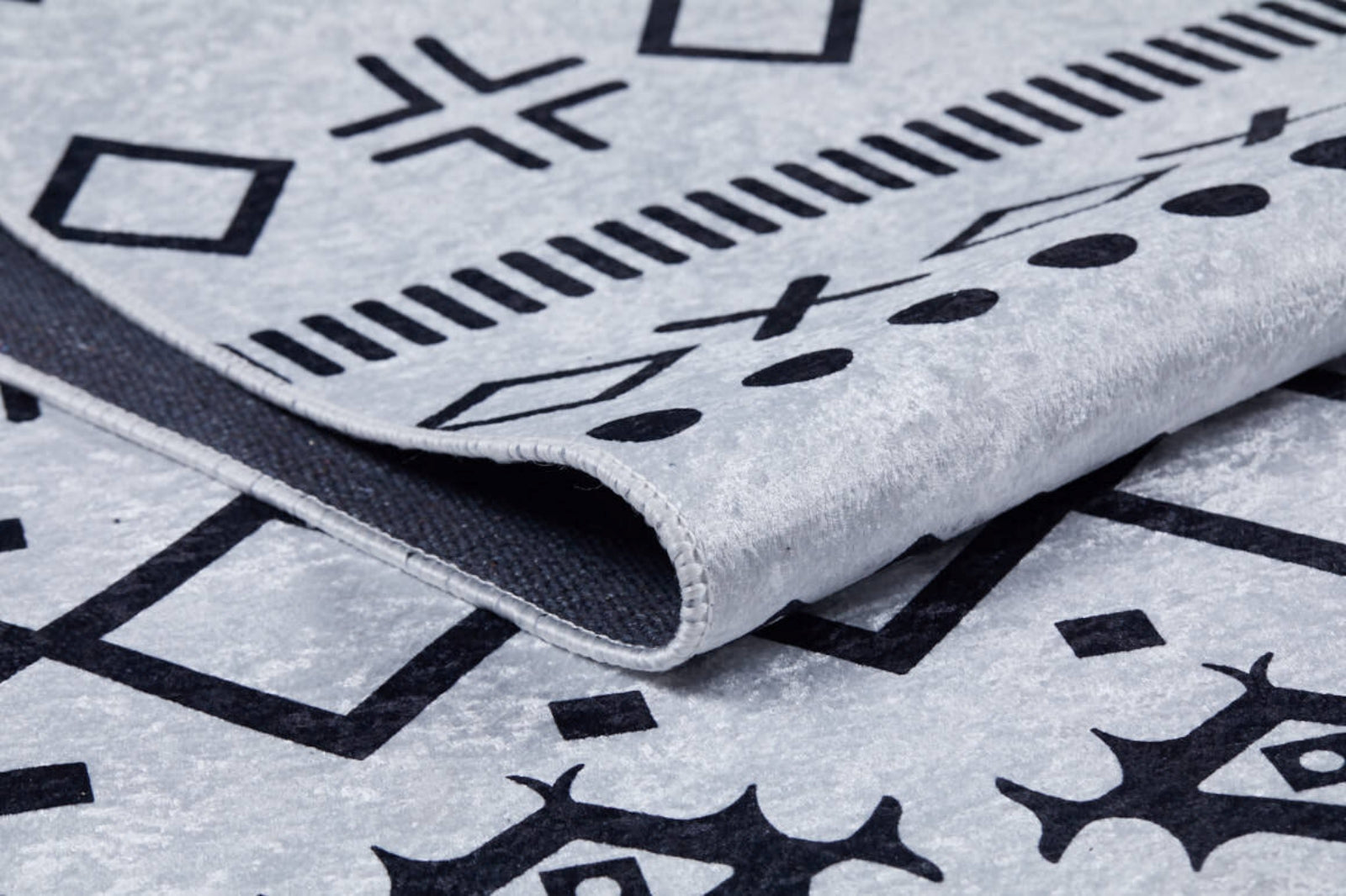 Grey Geometric Area Rug - Digital Print Carpet | Non Slip, Antibacterial, Washable