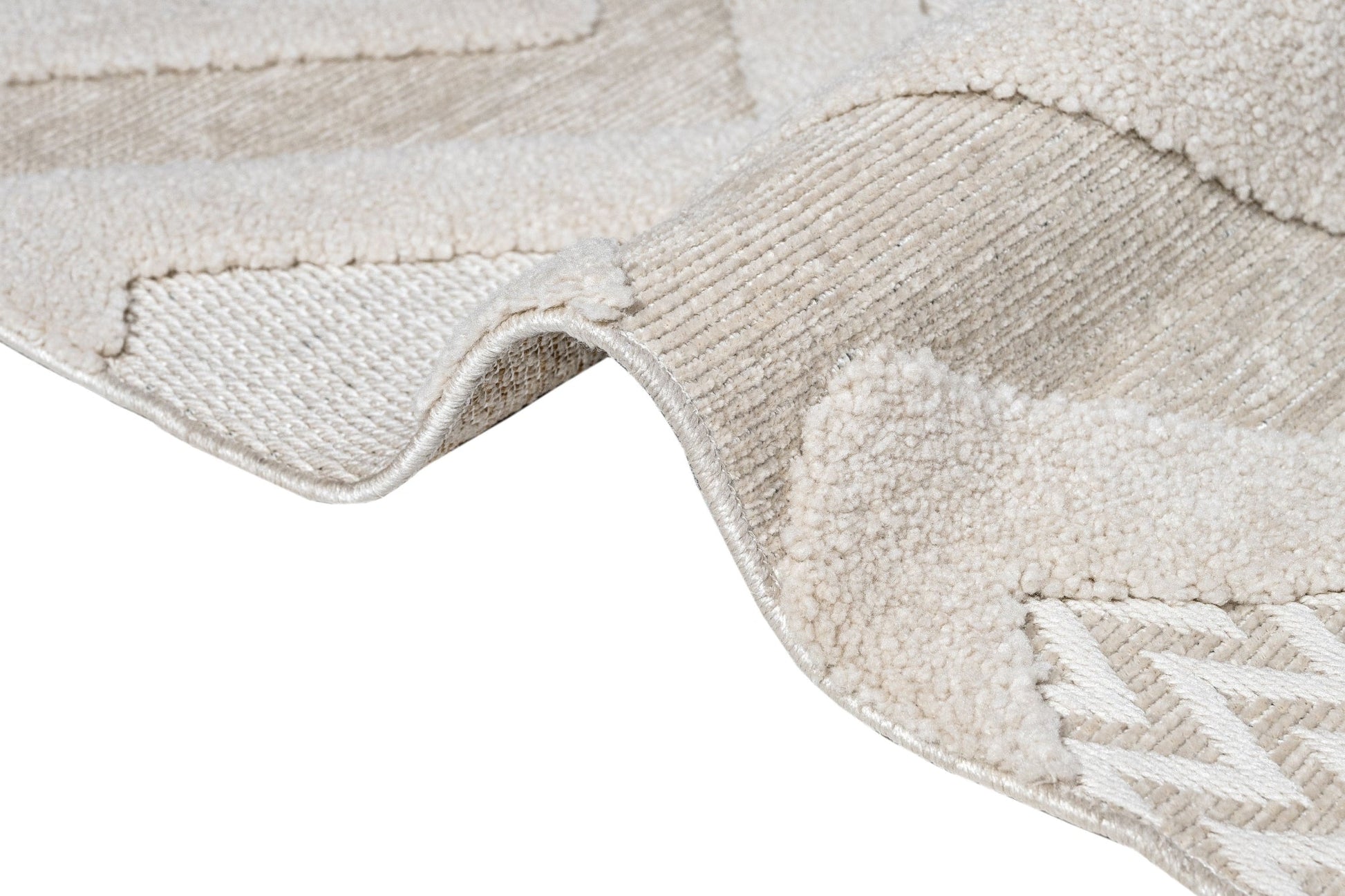 Beige Chenille Area Rug - Machine Made Zigzag Pattern Rug With Cotton Base