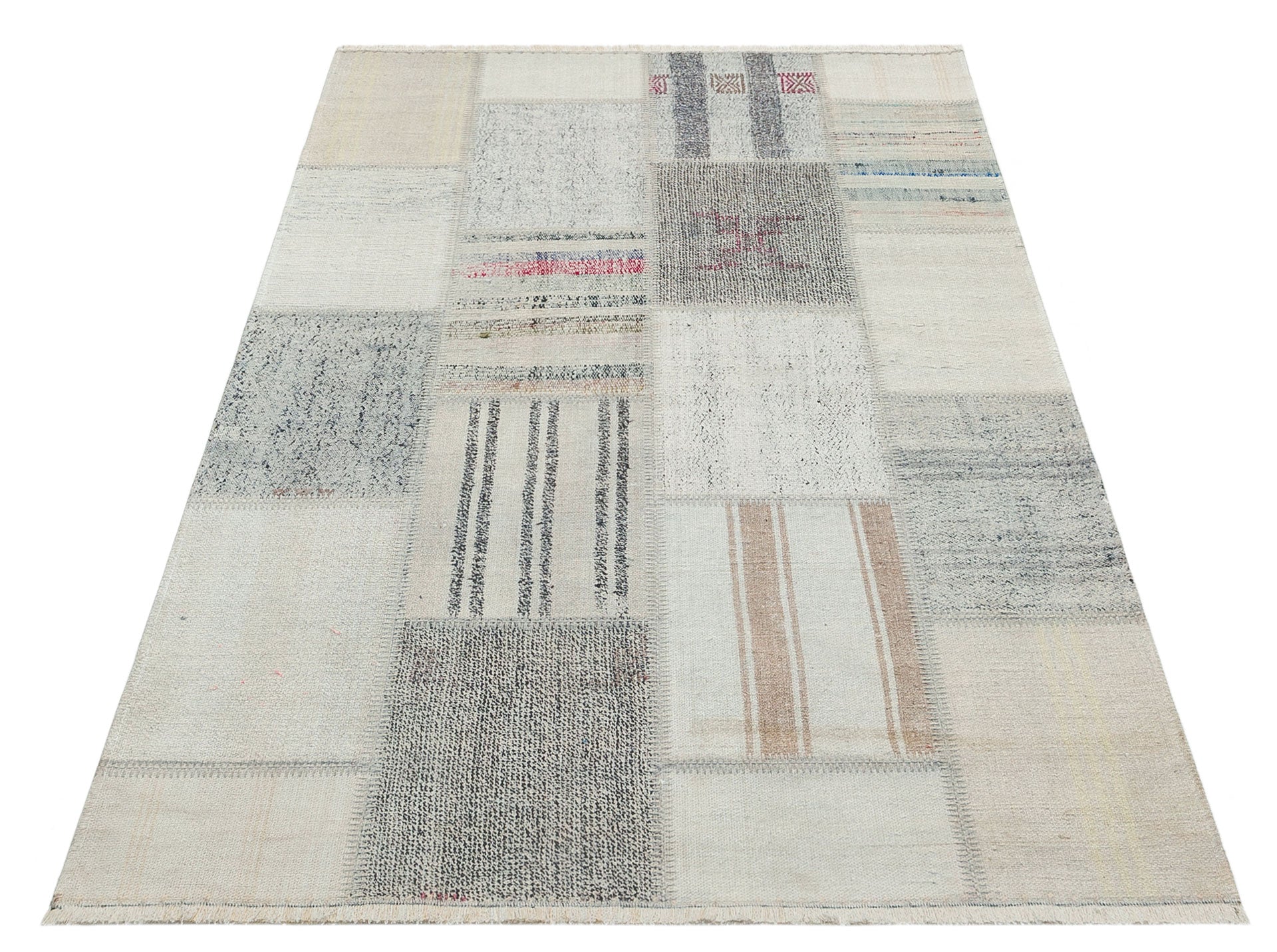 Patchwork Area Rug – Machine Made Grey Kilim Rug with Soft Texture Carpet