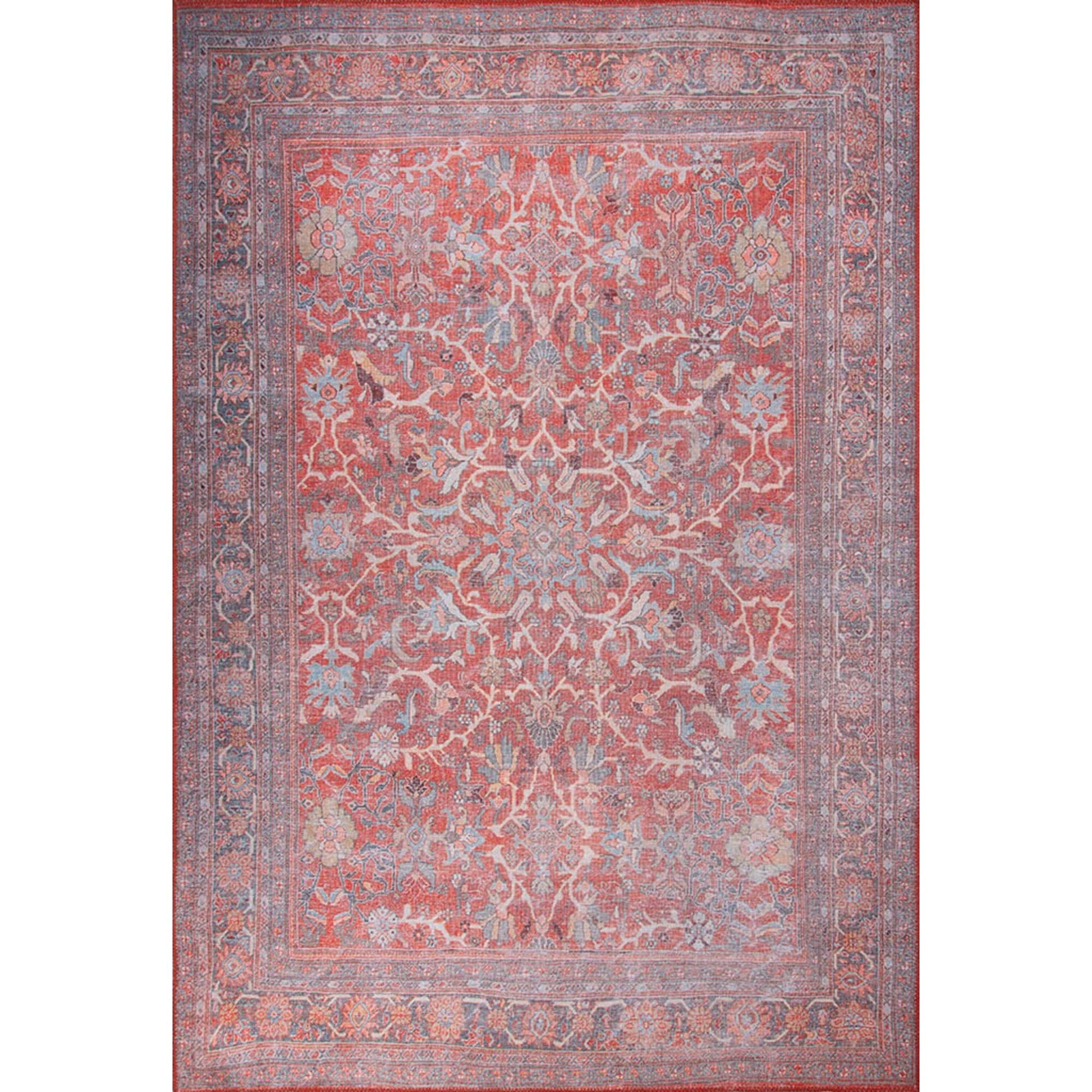 Ethnic Cotton Area Rug – Washable Non Slip Red Patterned Decorative Floor Covering