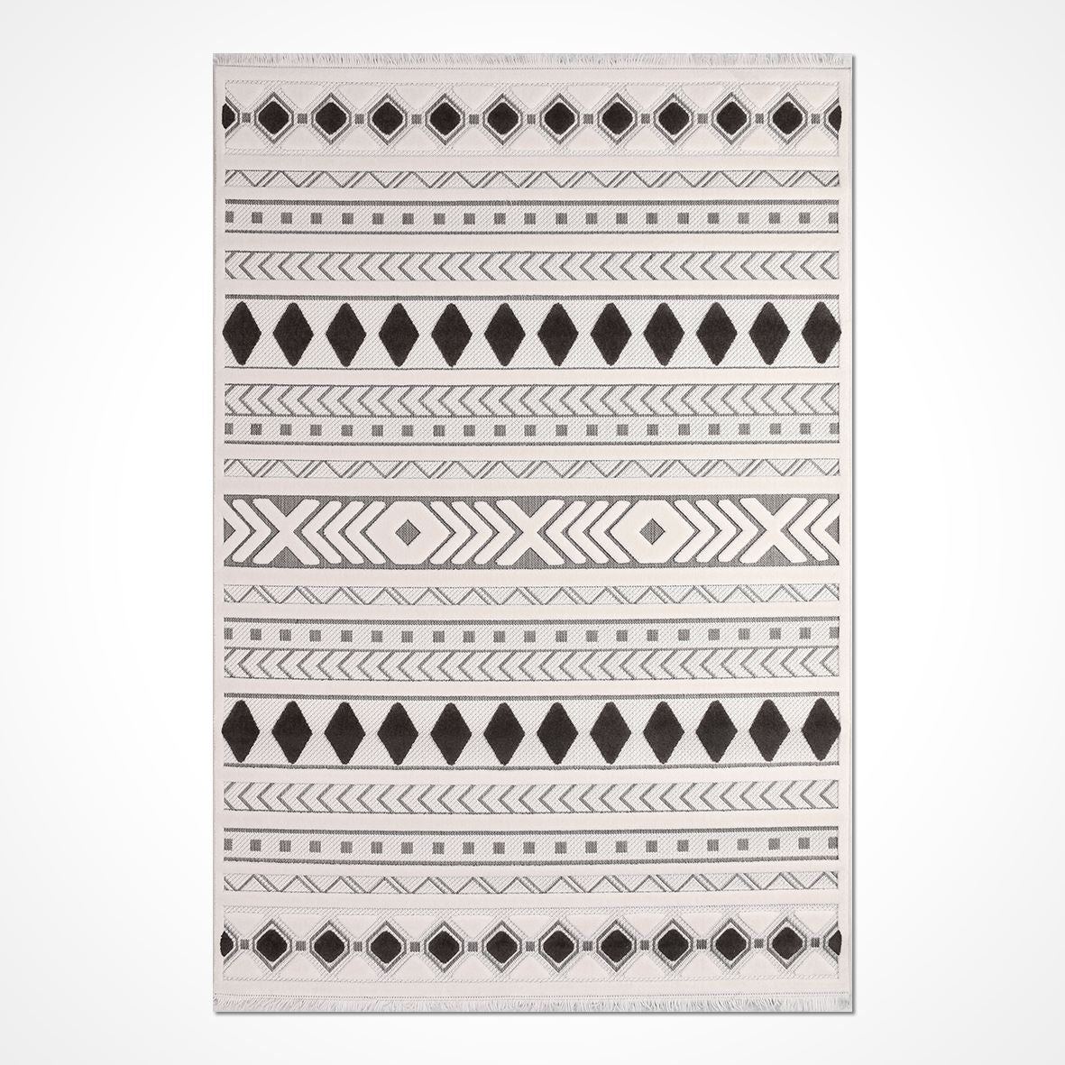 Grey Geometric Area Rug - Machine Made Rug With 8mm Pile, Durable Polyester Carpet