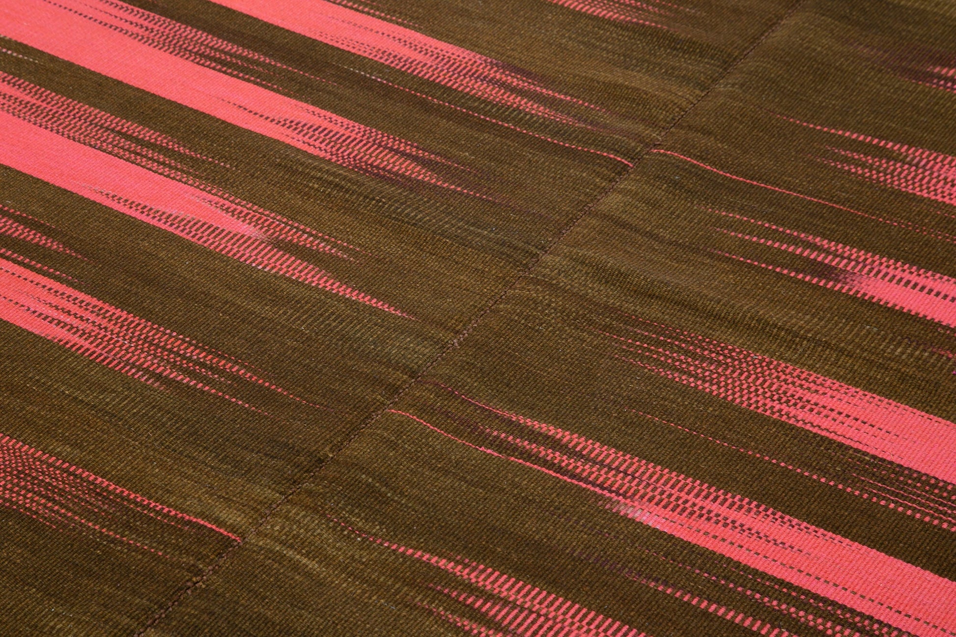 This handmade area rug is a pink striped cotton wool kilim, hand woven to bring vintage charm and durable style to your living room. Crafted using traditional Turkish hand knotted techniques, this natural fiber rug combines soft wool and durable cotton weave for lasting comfort and strength. Measuring 6'6''x9'3'', it fits perfectly in medium to large spaces, adding bohemian style and striped home decor that complements diverse interiors.