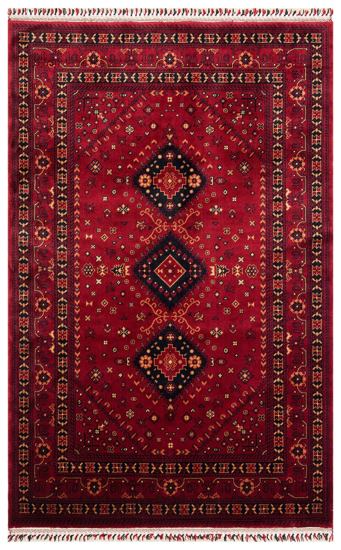 Choose the Afghan viscose rug to experience the perfect blend of artistry and function. Its rich red hues and classic design elevate any space while providing comfort and durability. Whether placed in a corridor or living room, this viscose area rug brings warmth and style that lasts for years.