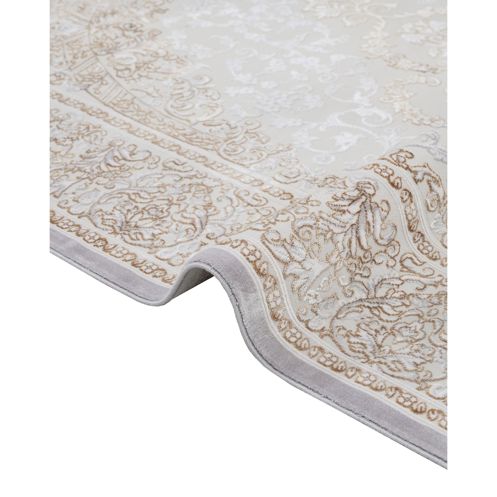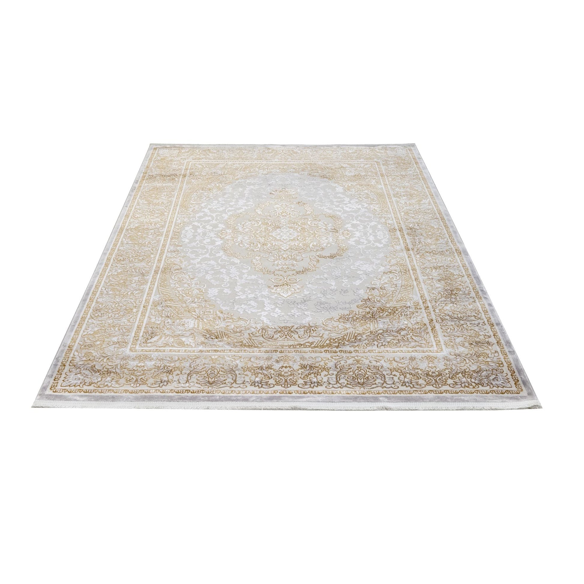 Gold Area Rug - Machine Made Classic Acrylic Carpet with Fringed Edges