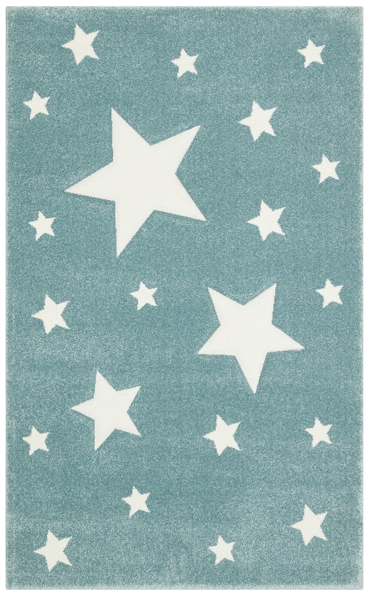 The kids blue star rug is a soft texture rug designed specifically for children's playrooms, providing a safe and comfortable area for kids to play and relax. This anti dust rug features a flatweave construction that prevents pile dust and fluff, ensuring a clean environment ideal for sensitive skin and allergies. The non slip carpet design keeps the rug securely in place, reducing the risk of slips and falls in busy kids' rooms. Easy to clean carpet fibers mean quick maintenance, making it perfect for active households. Made by Eko with professional craftsmanship, this machine made carpet matches the vibrant star pattern rug images exactly, offering durable and child safe carpet quality you can trust.