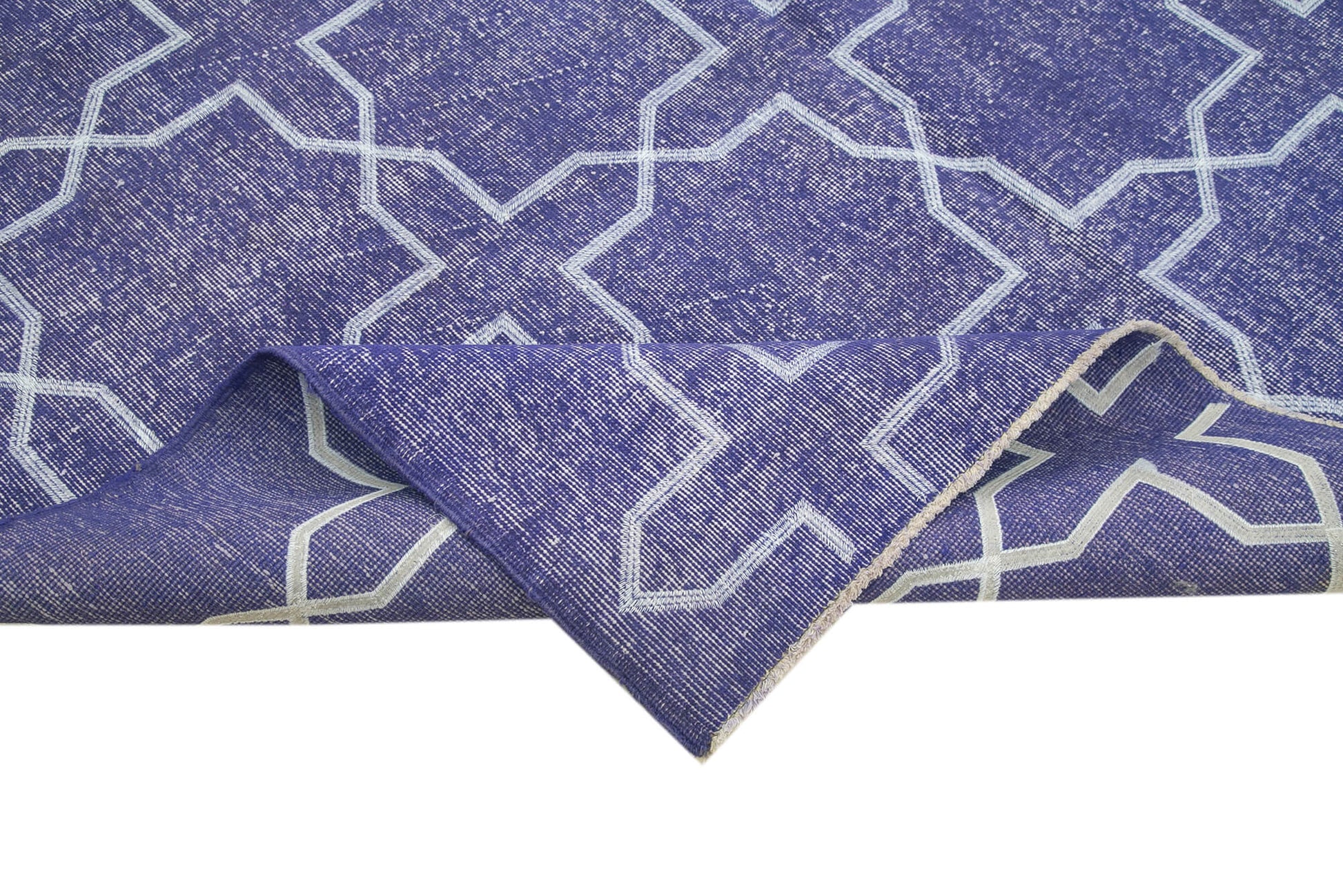 This handmade geometric rug is a stunning purple wool carpet that combines traditional craftsmanship with modern geometric decor to transform your living room carpet into a bohemian style rug centerpiece. Crafted by Agacan, this hand woven rug measures 6'11'' x 10'0'' and blends cotton and wool fibers for a soft wool area rug that offers both durability and comfort. Each vintage hand knotted rug is made from natural fiber rug materials sourced from 30 to 70-year-old Turkish geometric carpets, carefully selected, cleaned, and treated with special washing techniques to neutralize and enhance original color shades.