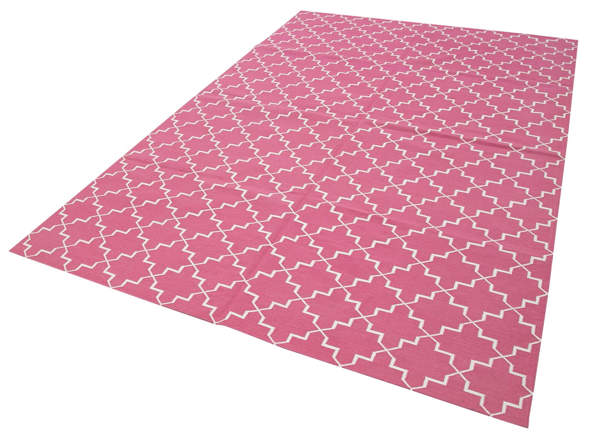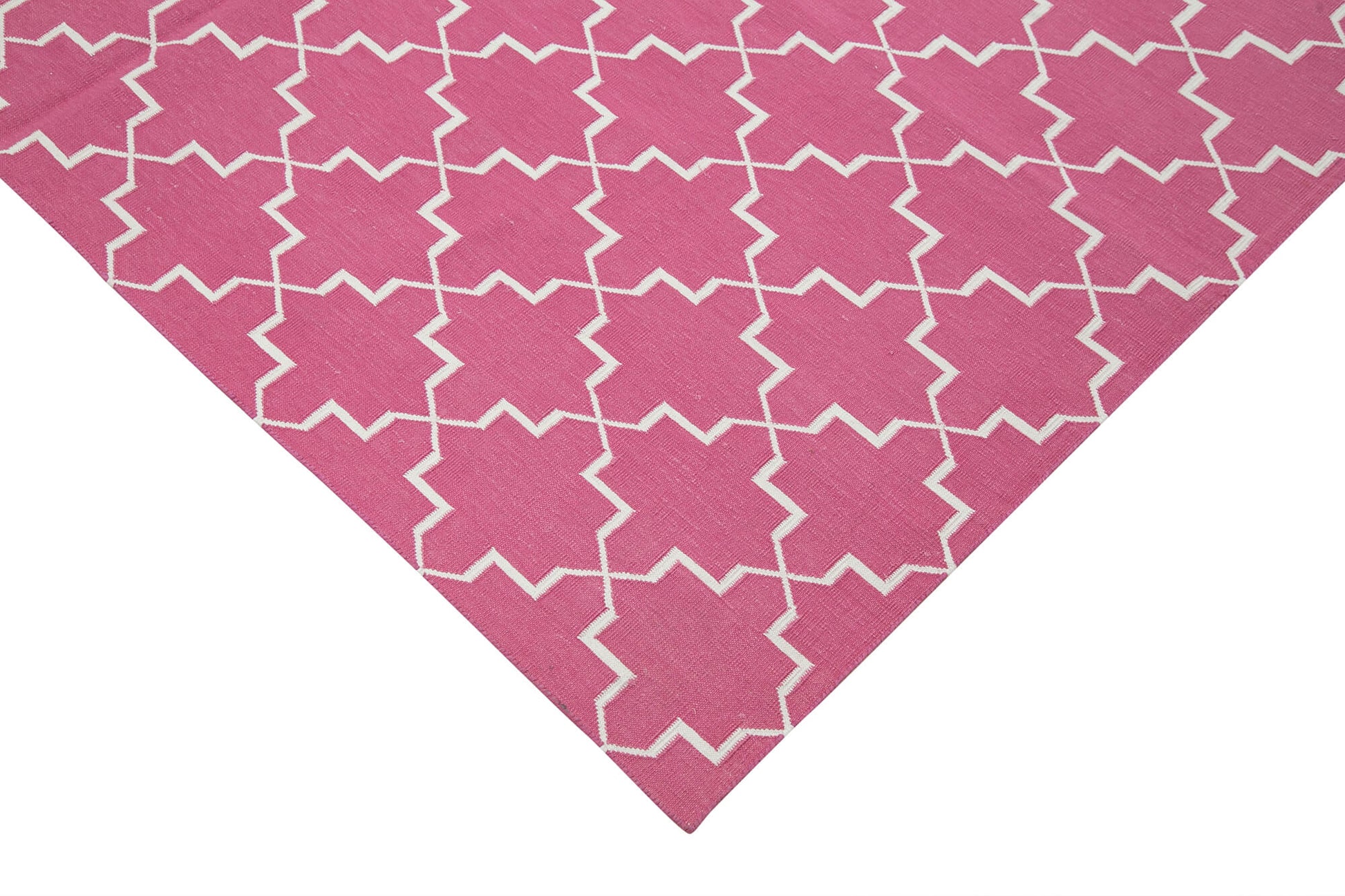 Handmade Area Rug – Geometric Pink Cotton Wool Boho Floor Covering 6'0''x9'1''
