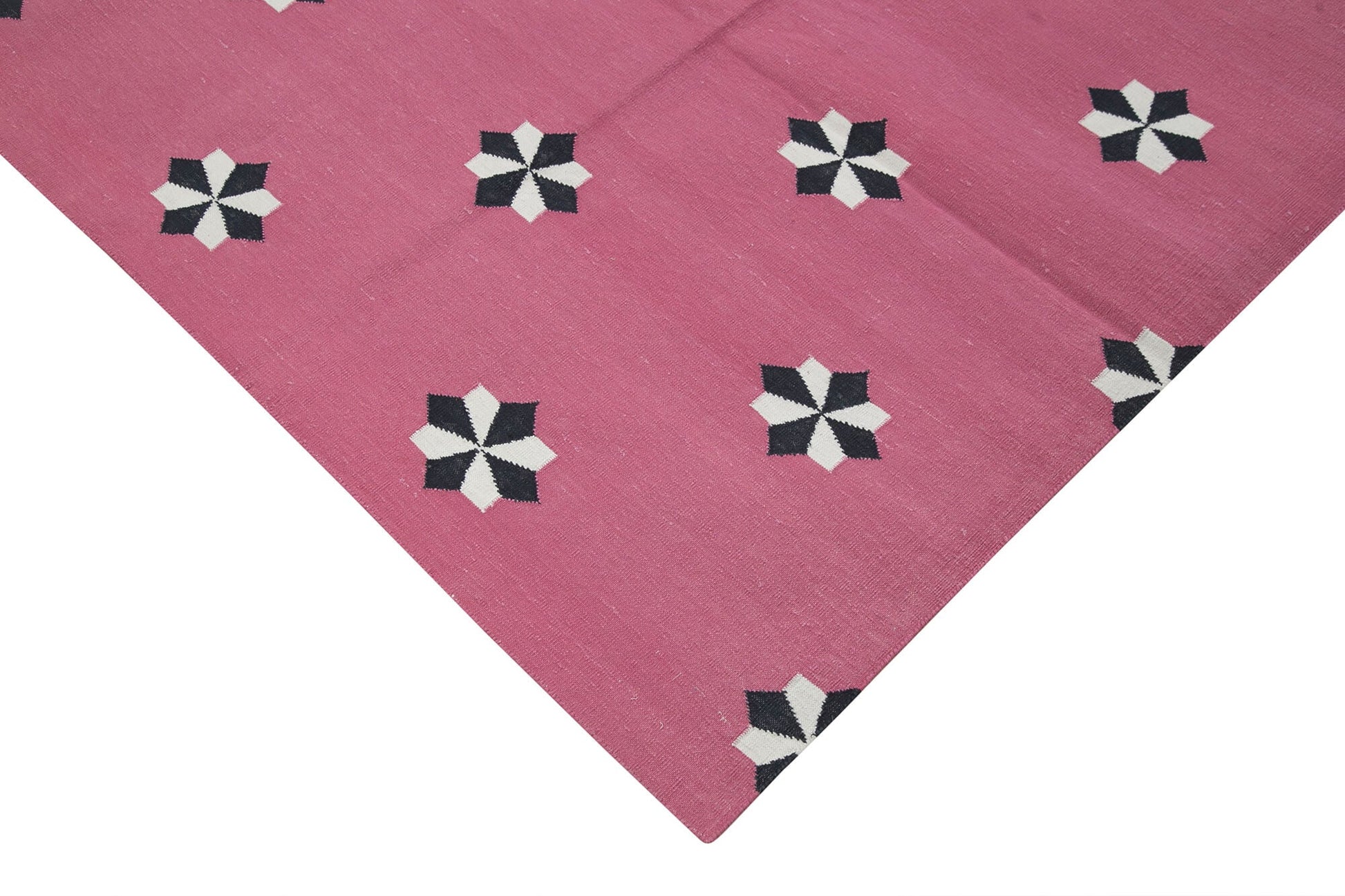 Handmade Wool Area Rug - Pink Vintage Geometric Cotton Wool Rug 8'x9'10''