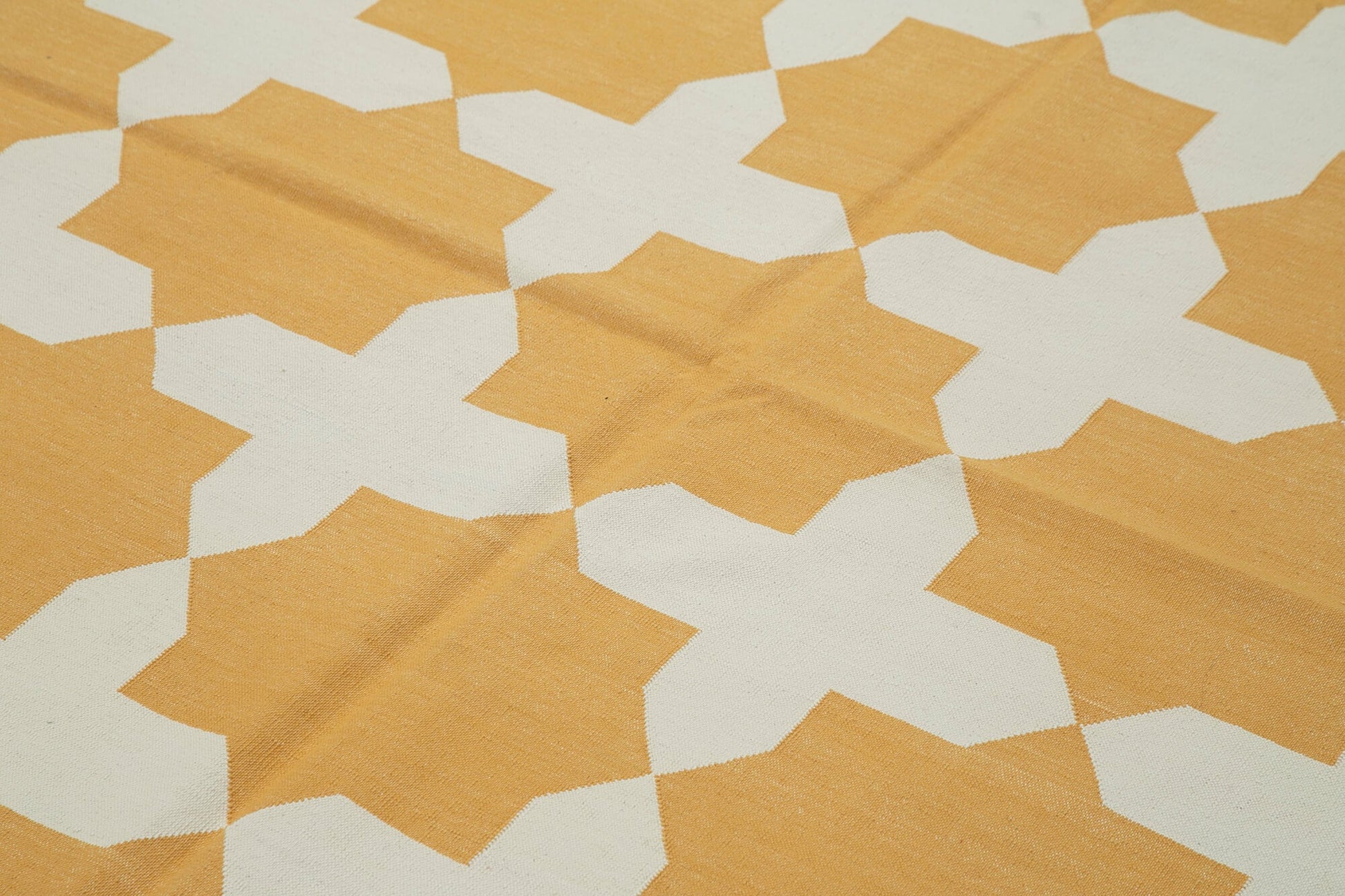 Handmade Wool Area Rug – Yellow Geometric Cotton Wool Rug 6'2'' x 8'11''