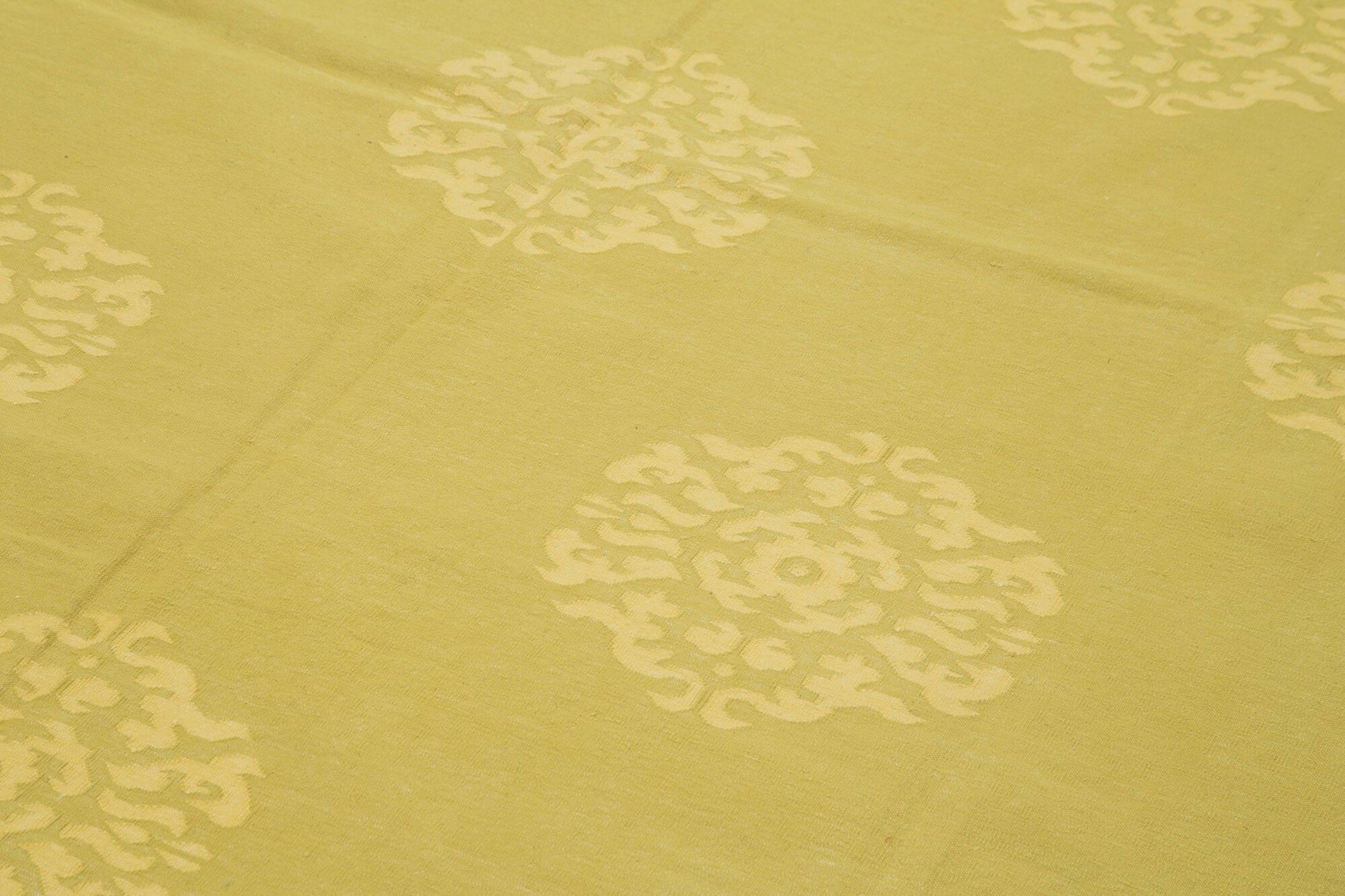 Handmade Area Rug – Yellow Geometric Cotton Wool Rug 7'3'' x 13'3'' Large Living Room
