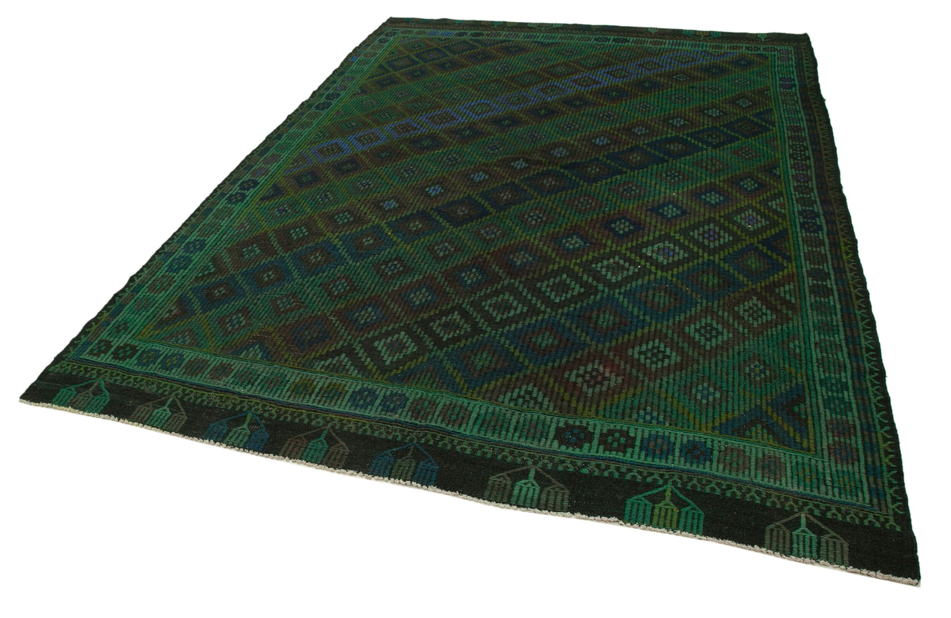 Handmade Geometric Kilim Rug - Green Area Rug 7x9 Foot | Goat Hair & Wool Carpet