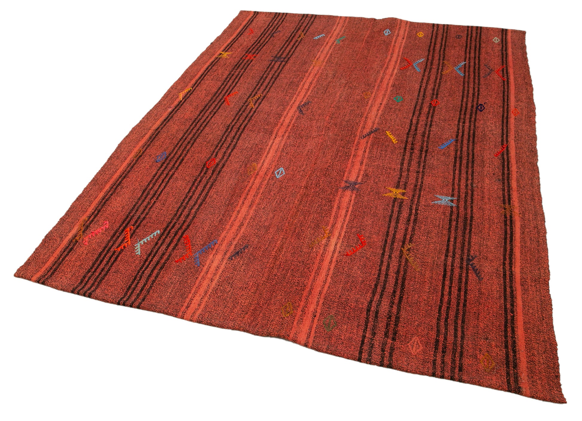 Handmade Geometric Kilim Rug – Orange Kilim Rug with Goat Hair & Wool Cotton Blend 5'9''x7'10''