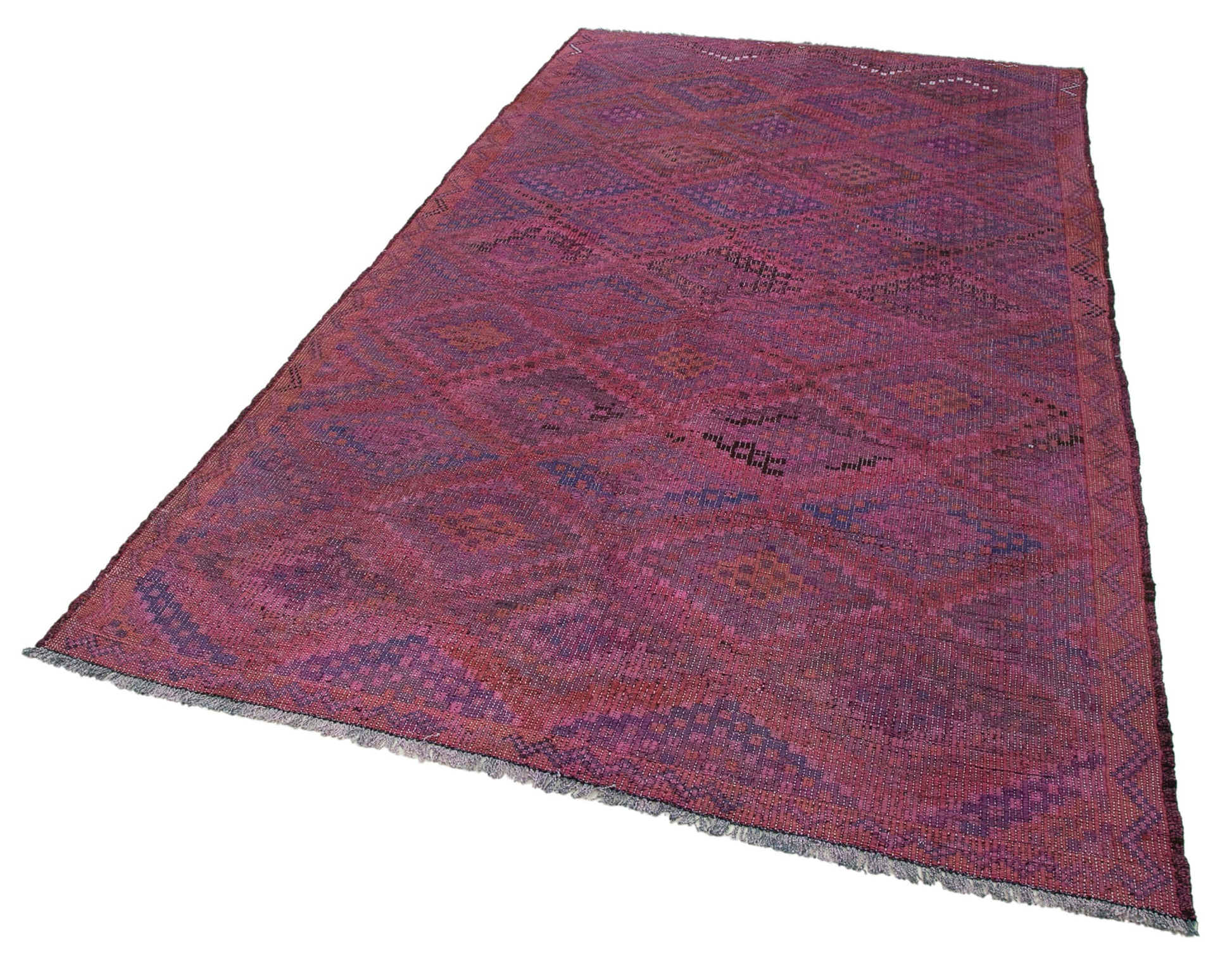 This handmade geometric kilim rug is a stunning 5'7'' x 9'6'' flat weave rug crafted from premium goat hair and soft wool, designed to bring vibrant color and durable comfort to your living room. Featuring a pink geometric rug pattern, this traditional kilim carpet combines vintage charm with bohemian style to create a colorful floor covering that enhances any space. Each Turkish wool carpet is hand woven and hand knotted using time-honored techniques, ensuring a durable hand knotted finish that lasts for decades. The vintage area rug is made from carefully selected wool and cotton materials, cleaned and washed with special methods to neutralize and refresh the original colors while preserving its authentic character.