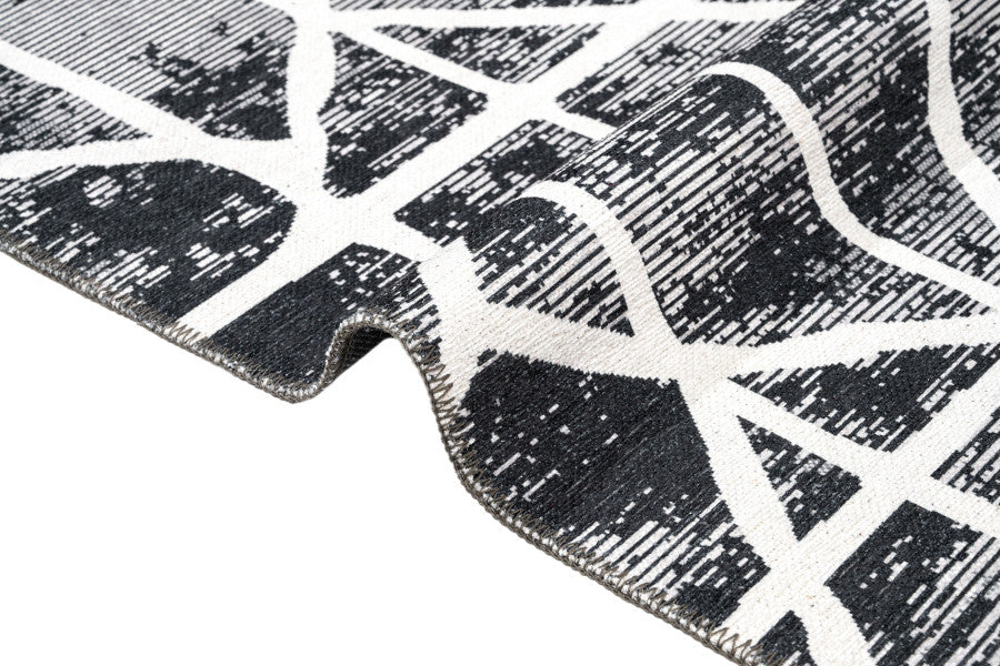 Geometric Area Rug - Black Grey Cotton Chenille Digital Print Carpet for Living Room