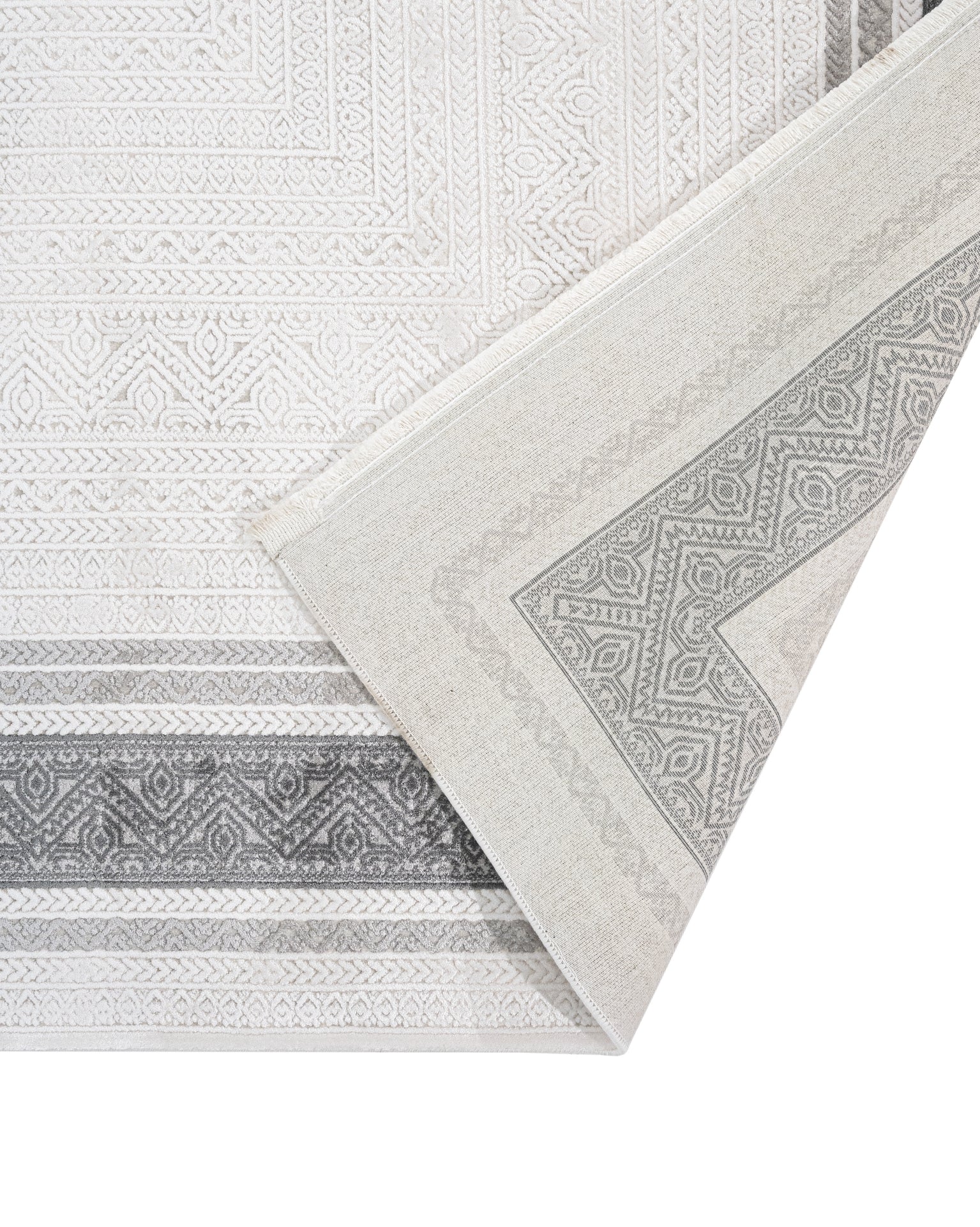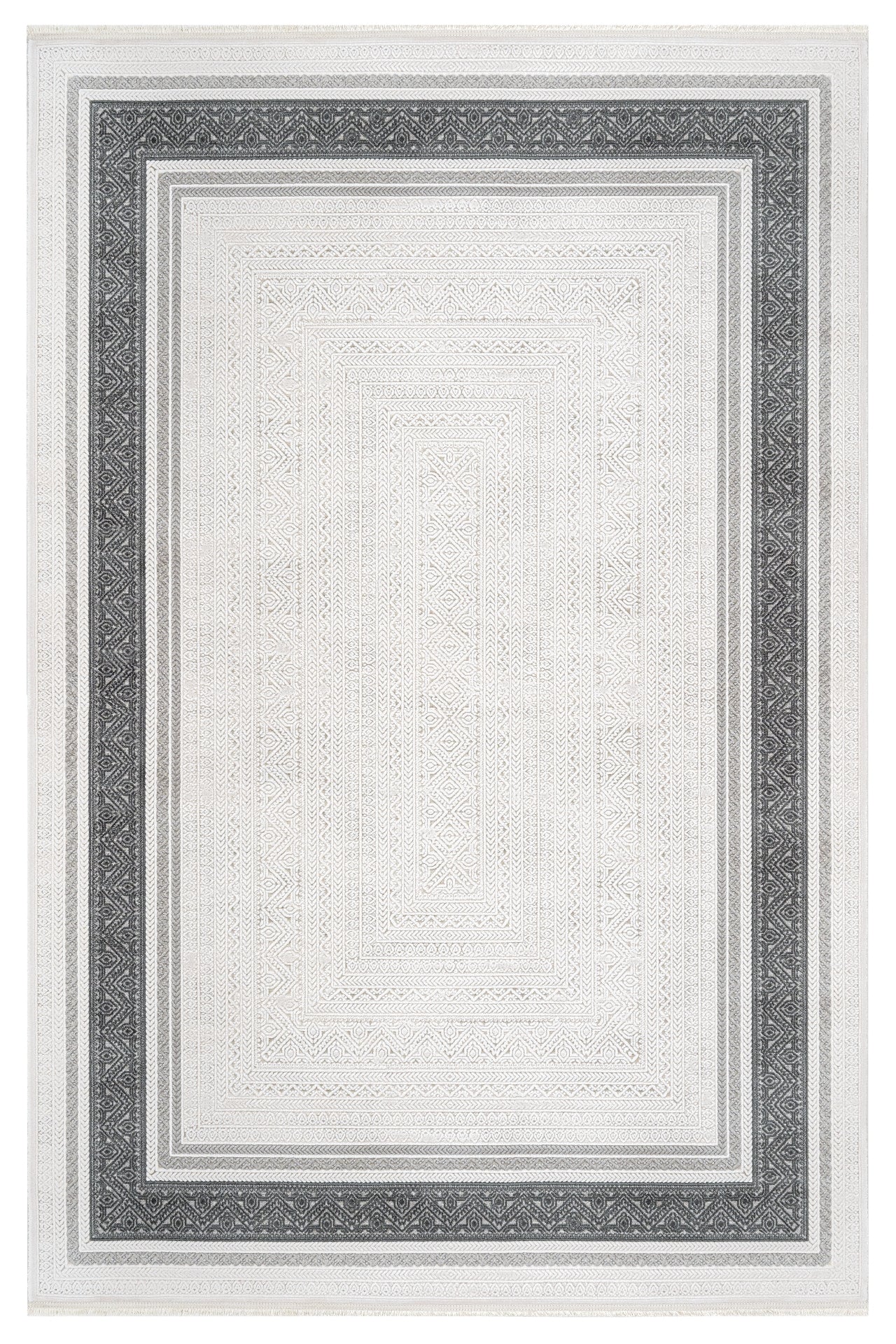 Grey Area Rug - Machine Made Rug with Framed Pattern & Overlock Edge Design