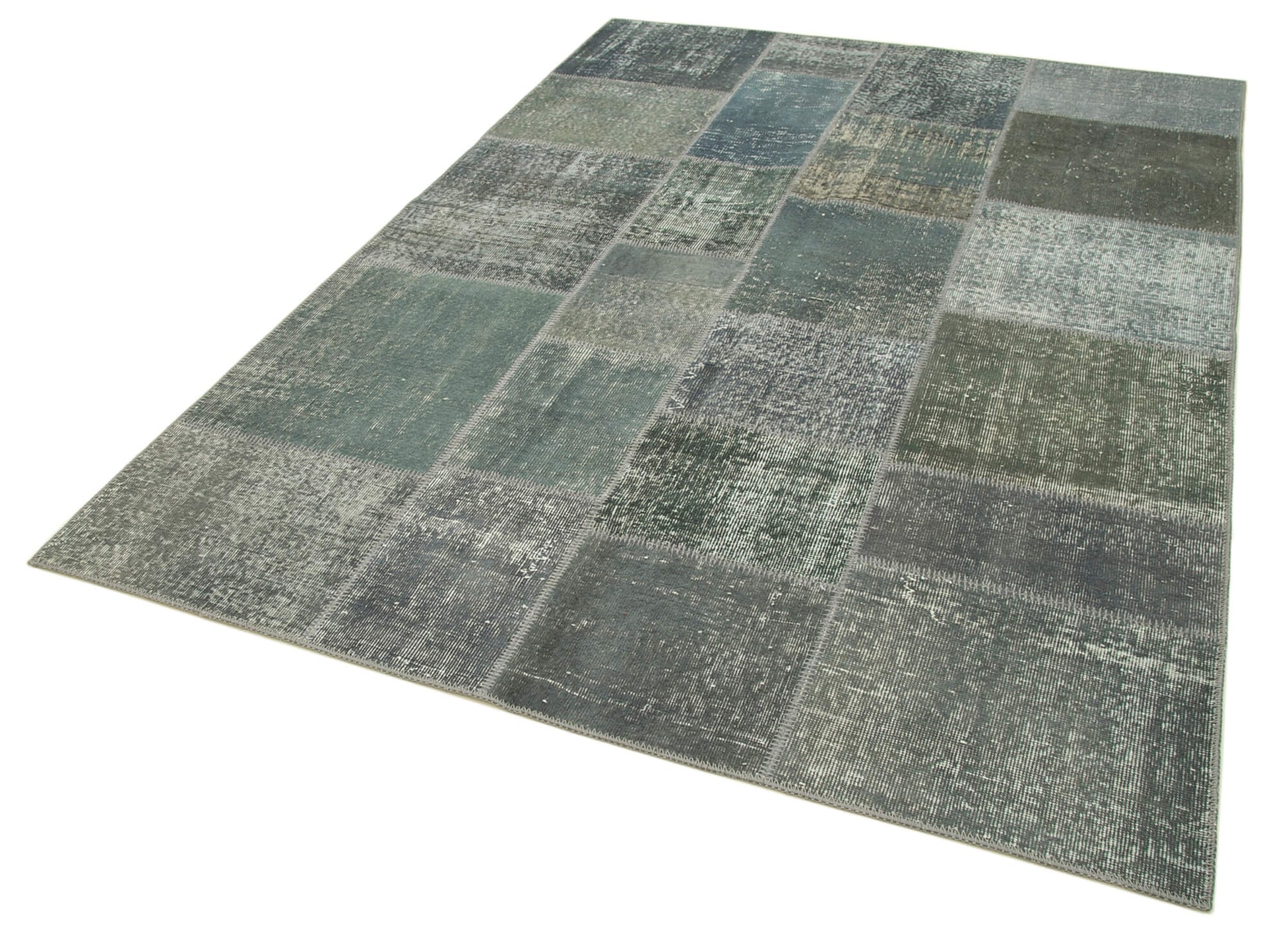 The Kirk Yama Grey Patchwork Cotton Wool Handmade Area Rug 5'7'' x 7'10'' is a beautifully crafted handmade patchwork rug designed to bring warmth and timeless style to your living room carpet. This hand woven carpet combines natural cotton and soft wool fibers to create a durable cotton rug that feels plush underfoot while offering long-lasting wear. Each vintage area rug is made from traditional handmade rug techniques, featuring hand knotted rug construction that ensures quality and authenticity. The Turkish patchwork rug design adds a unique patchwork style rug aesthetic, blending neutral grey tones with subtle color variations achieved through special washing techniques that neutralize and refresh the original colors. Measuring 5 feet 7 inches by 7 feet 10 inches, this woven floor covering fits perfectly in medium-sized rooms, enhancing any space with its natural fiber rug composition and soft wool carpet texture.