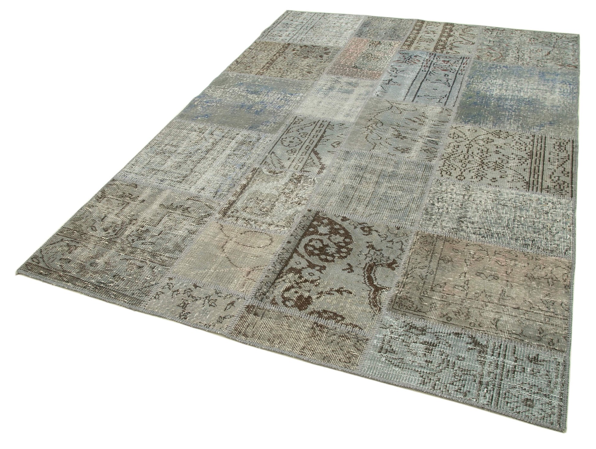 Handmade Patchwork Rug - Kirk Yama Grey Cotton Wool Vintage Area Rug 5'7" x 7'10"