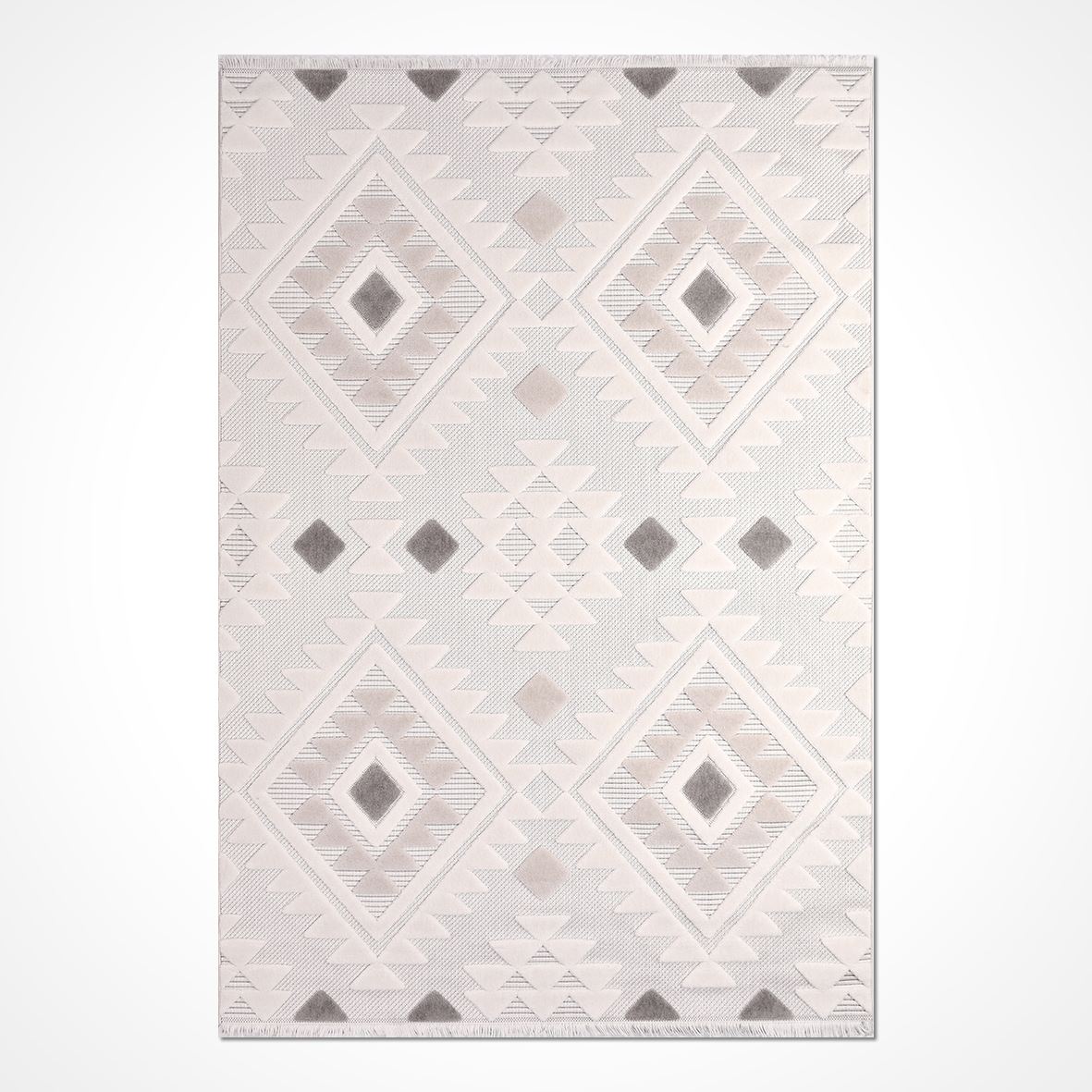 Beige Geometric Area Rug – Machine Made Polyester Rug with 8mm Pile Height