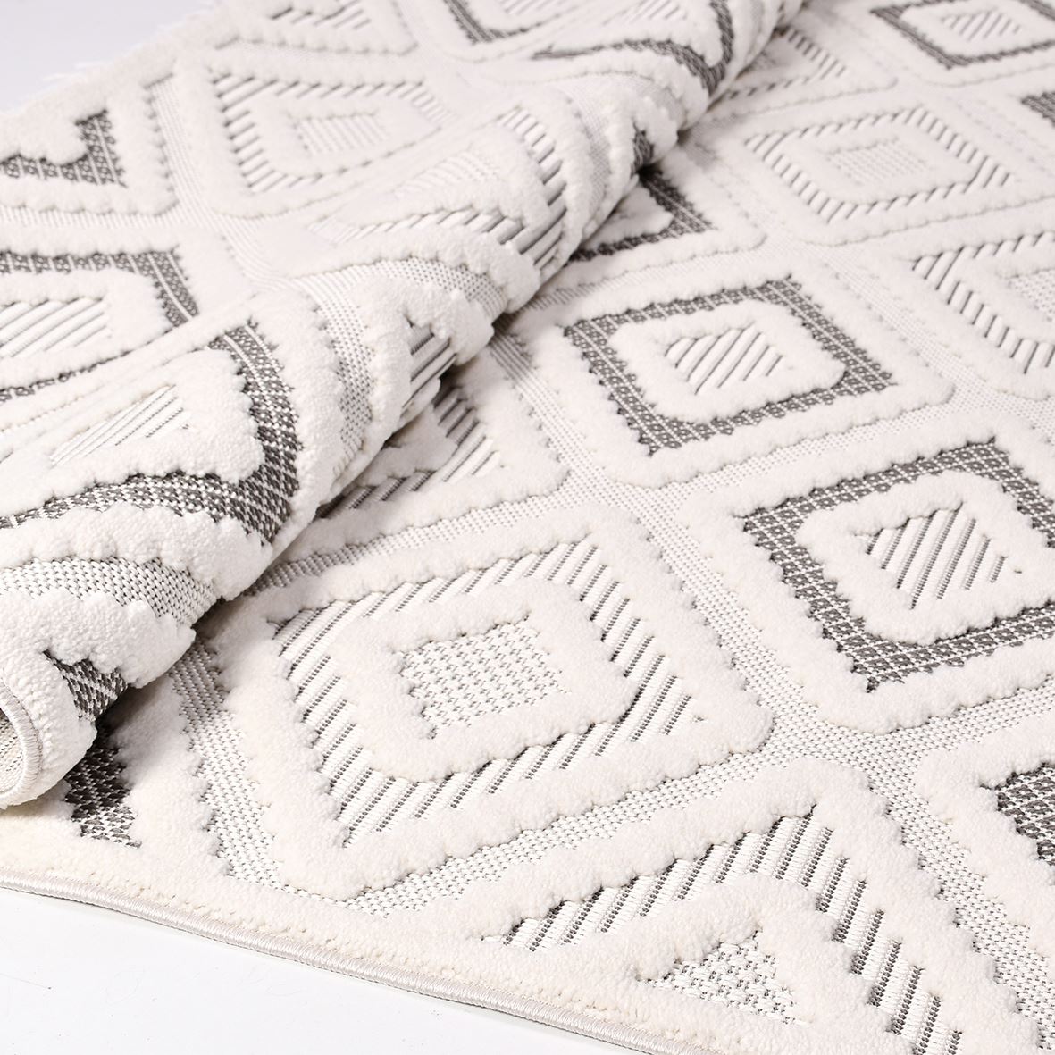 The Geometric Area Rug is a machine made rug crafted from durable polyester yarn, designed to bring a modern floor carpet solution to your living room or hallway. Featuring an 8mm pile height carpet and a high stitch density rug with 200,000 stitches, this polyester area rug offers both softness and longevity for everyday use. This white geometric rug combines contemporary design rug aesthetics with practical non slip area carpet functionality, ensuring safety and style in any space.