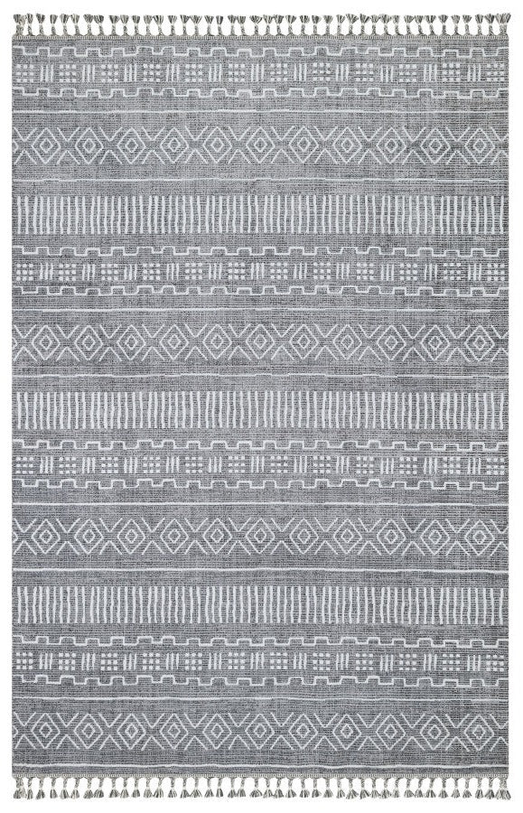 Grey Geometric Area Rug - Machine Made Cotton Yarn Carpet | Non Shedding