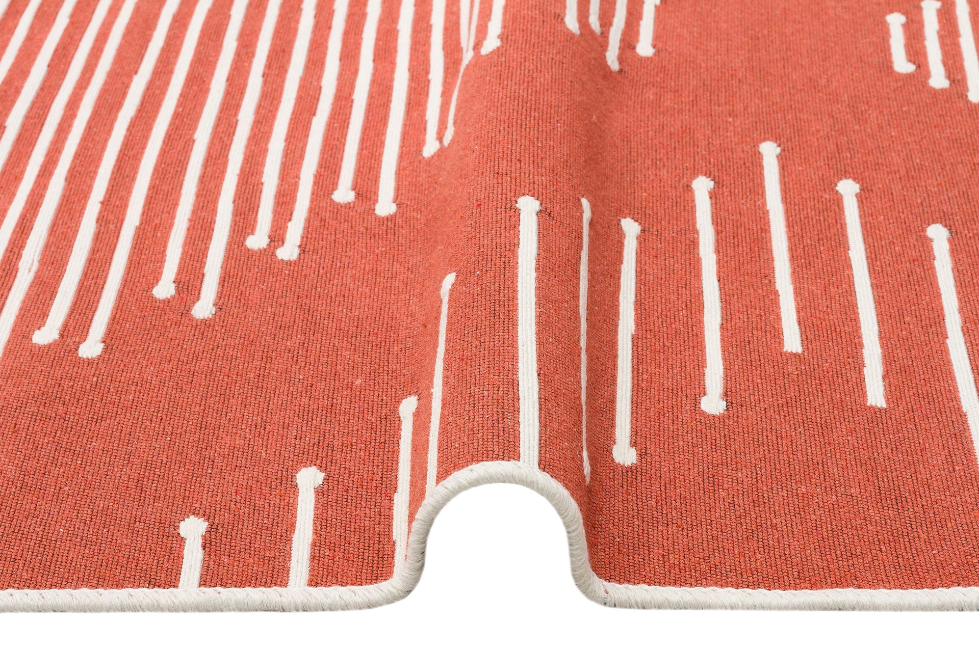 The Cotton Kilim Rug from the Eko Kilim Collection is a durable and washable cotton kilim rug designed to enhance any living space with its modern patterned rug style. This double sided kilim flatweave area rug offers a reversible cotton rug option that combines geometric cotton rug aesthetics with practical features like an antislip floor mat backing. Perfect as a durable kitchen rug or soft corridor carpet, it delivers comfort and style while being easy to clean and maintain.