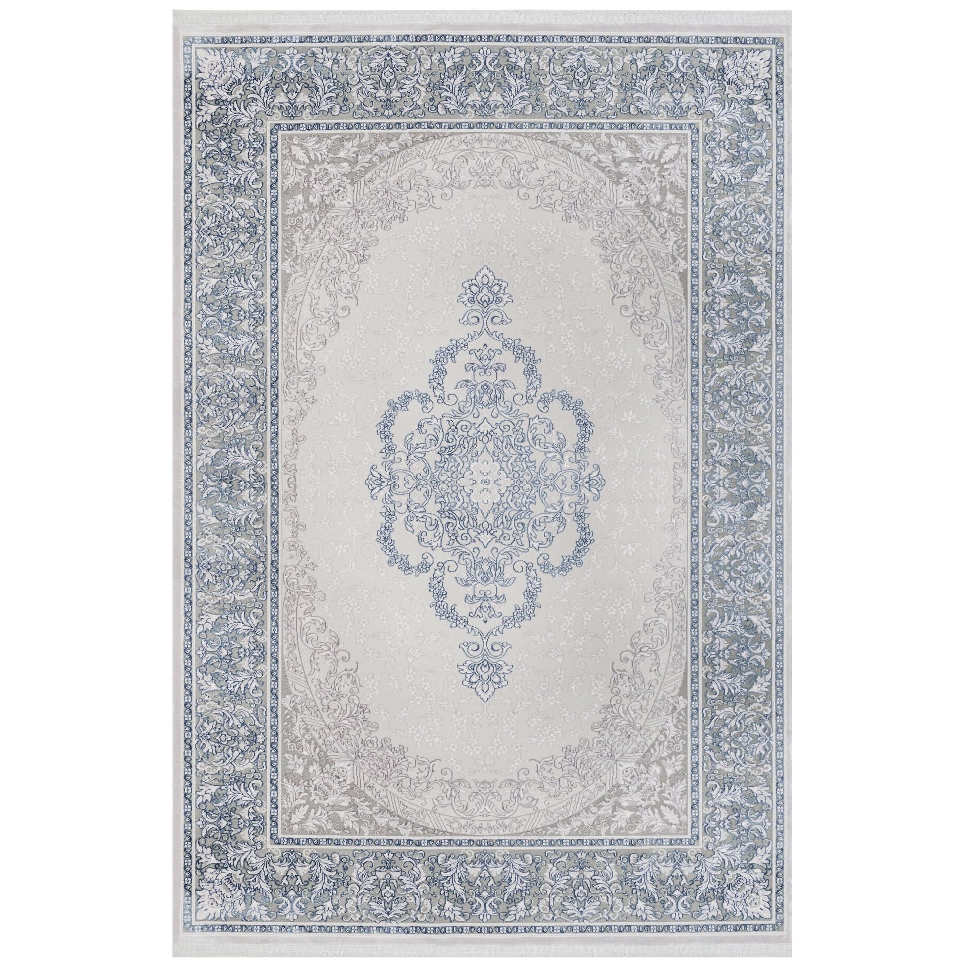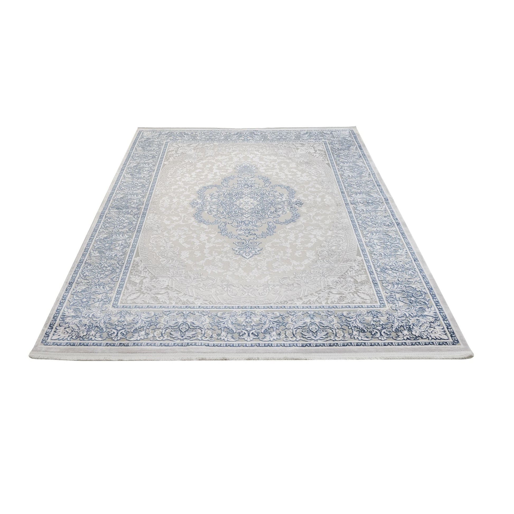 Blue Classic Area Rug – Machine Made Acrylic Carpet with Fringed Edges