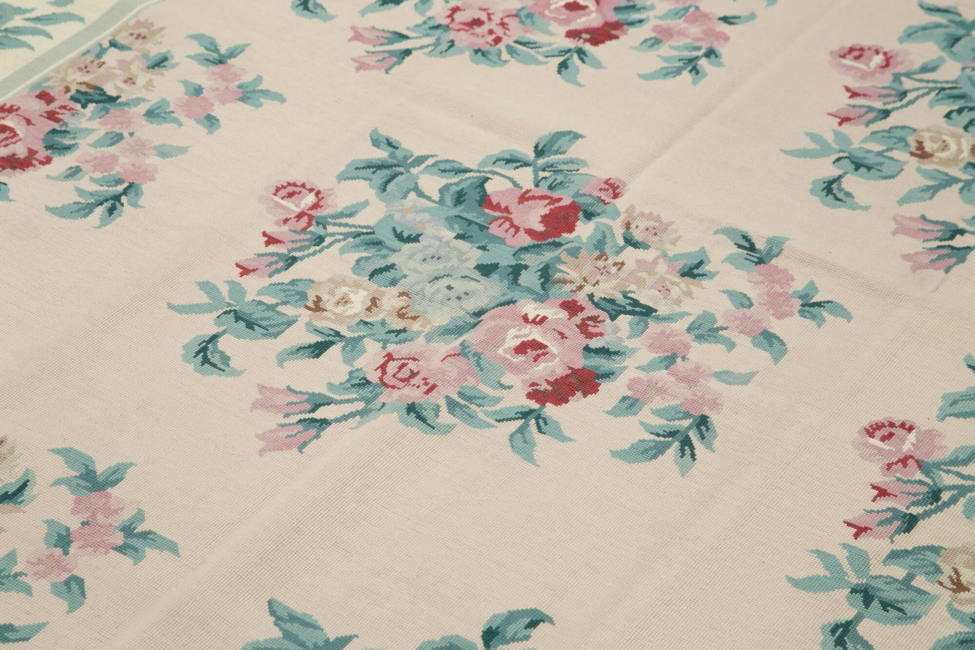 Handmade Floral Area Rug – Pink Floral Rug, Vintage Wool & Cotton Wool Carpet 5'8''x8'4''