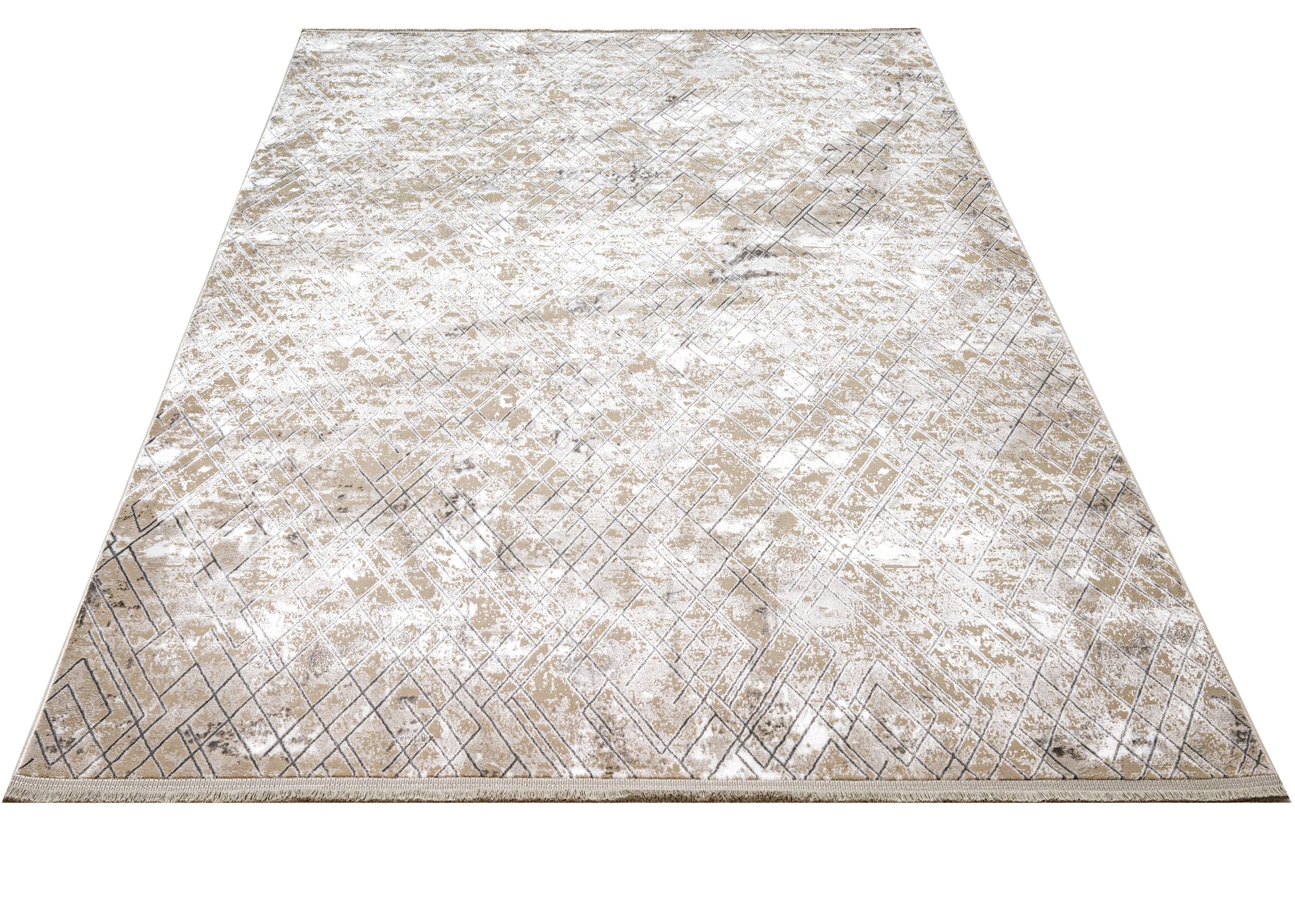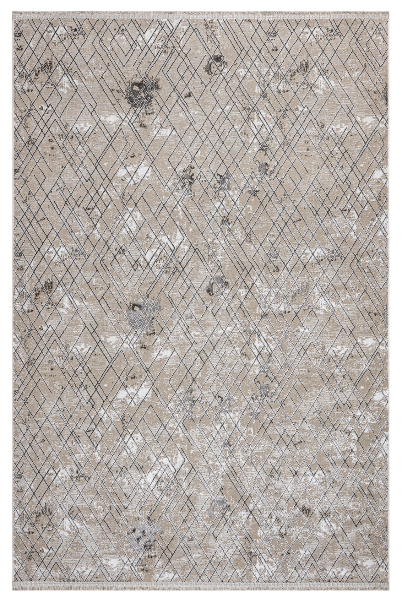 Grey Geometric Area Rug - Machine Made Microfiber Carpet With Cotton Base