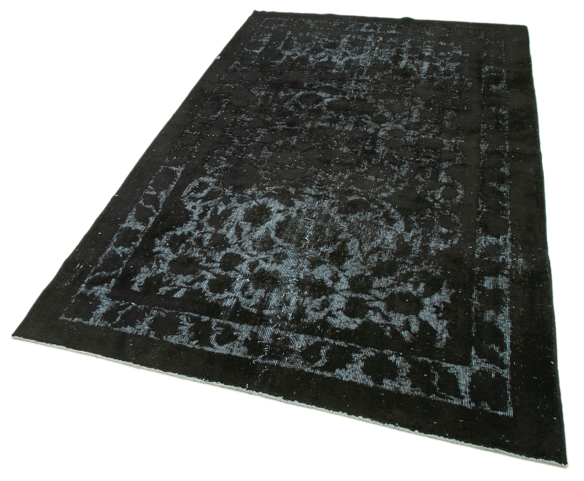 Handmade Vintage Area Rug – Black Cotton Wool Rug, Durable Classic Style Carpet 4'11"x8'2"