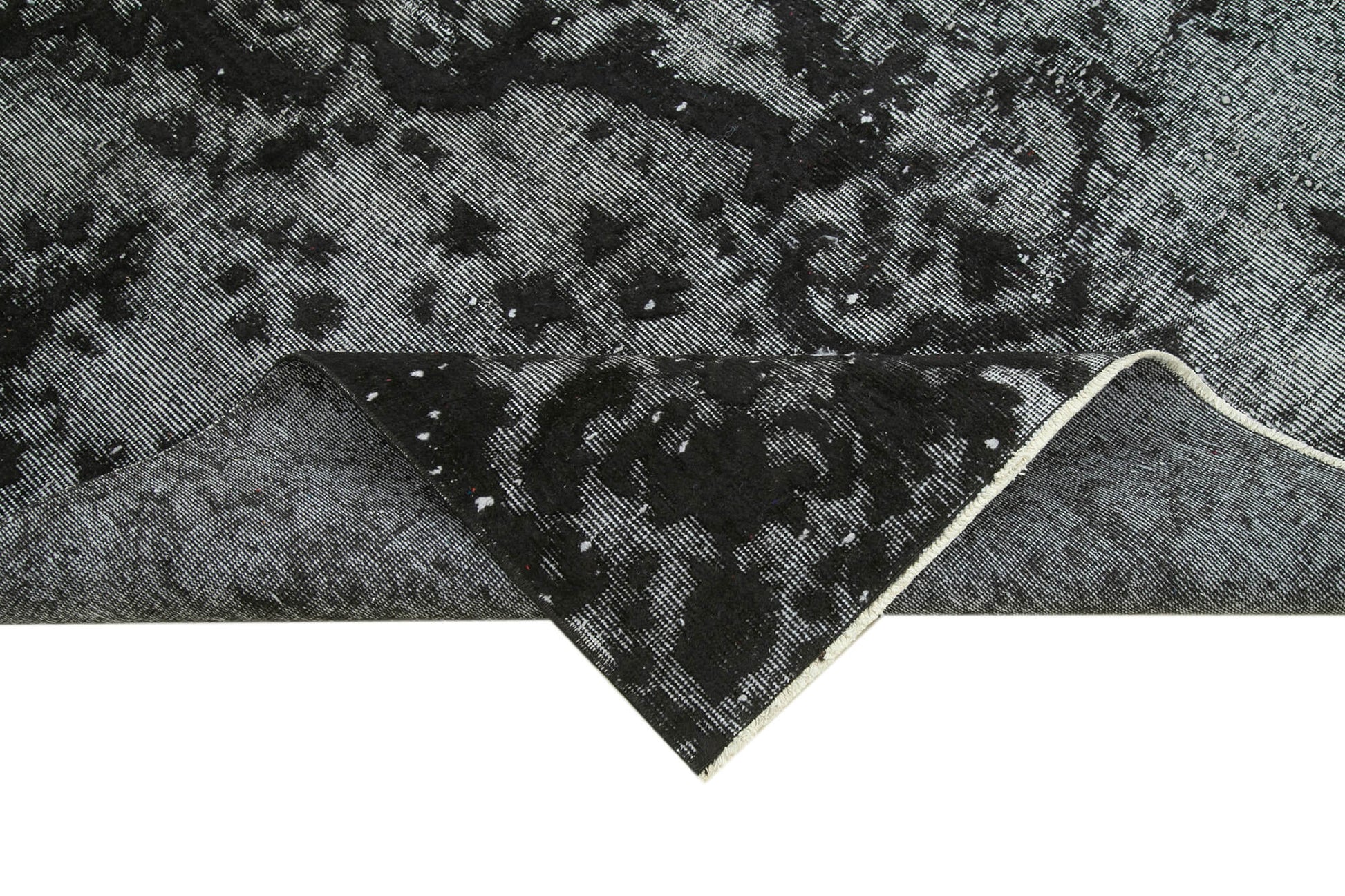 The Oyma Vintage Black Vintage Cotton Wool Handmade Area Rug 5'8'' x 8'10'' is a handmade vintage area rug that brings timeless style and durable comfort to your living space. Crafted from natural wool fibers and durable cotton weave, this hand woven carpet combines traditional hand knotted rug techniques with classic vintage style, making it an ideal living room rug decor or area rug for salon. Each 30 year old carpet is carefully selected, cleaned, and washed using special methods that neutralize and subtly alter the original colors to enhance its unique character.