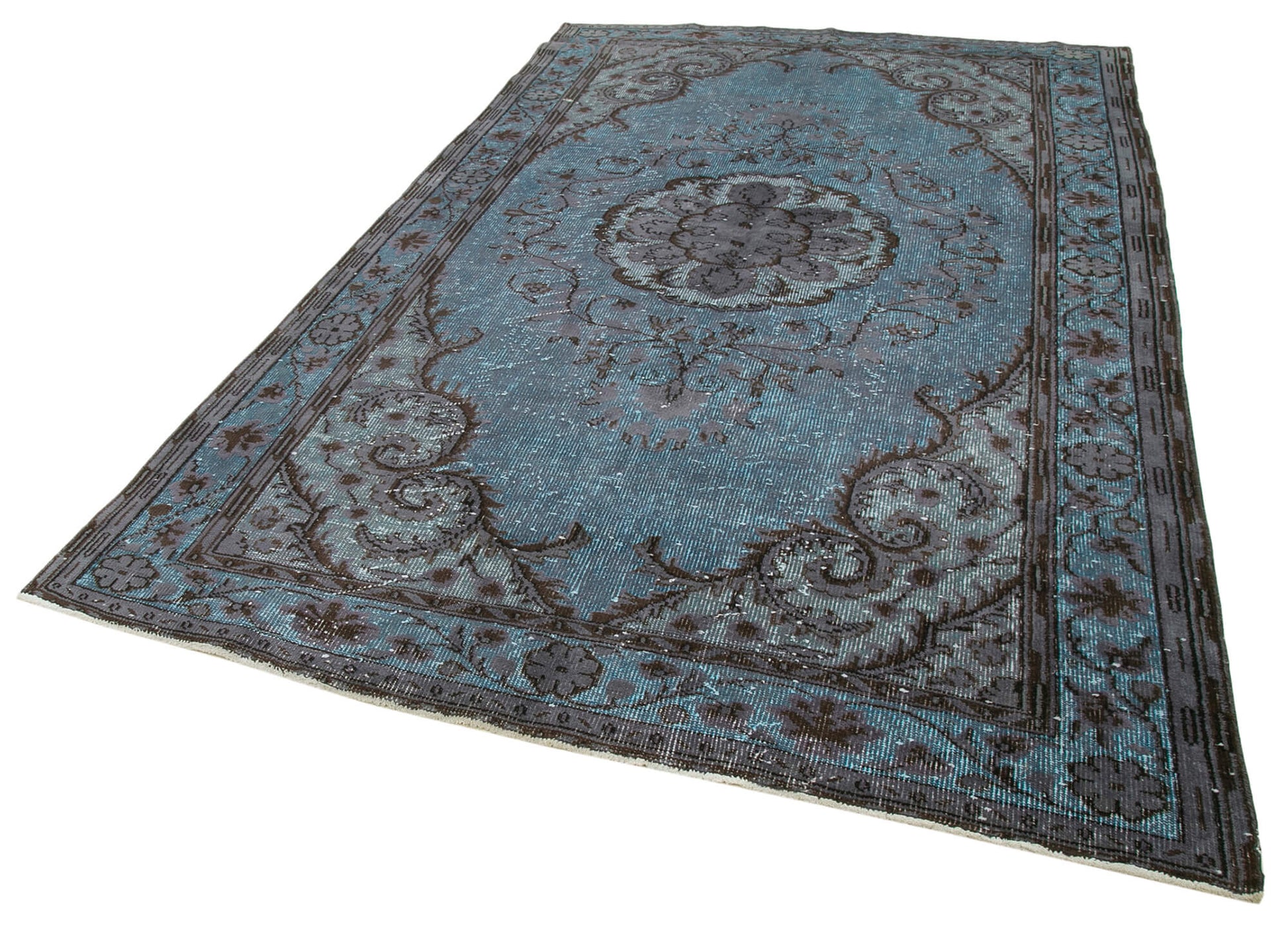 The Oyma Vintage Turquoise Vintage Cotton Wool Rug is a handcrafted vintage carpet designed to bring timeless elegance and durable comfort to your living room. This vintage cotton wool rug measures 6'4'' x 10'4'', offering a perfect size for medium to large spaces. Made from a cotton wool blend, it combines the softness of wool with the strength of cotton for a long-lasting natural fiber rug that feels gentle underfoot. Each handmade area rug is a traditional hand knotted Turkish vintage carpet, carefully selected from pieces aged between 30 and 70 years, then cleaned and restored using special washing techniques that neutralize and subtly enhance the original colors, creating a unique turquoise wool carpet with bohemian style appeal.