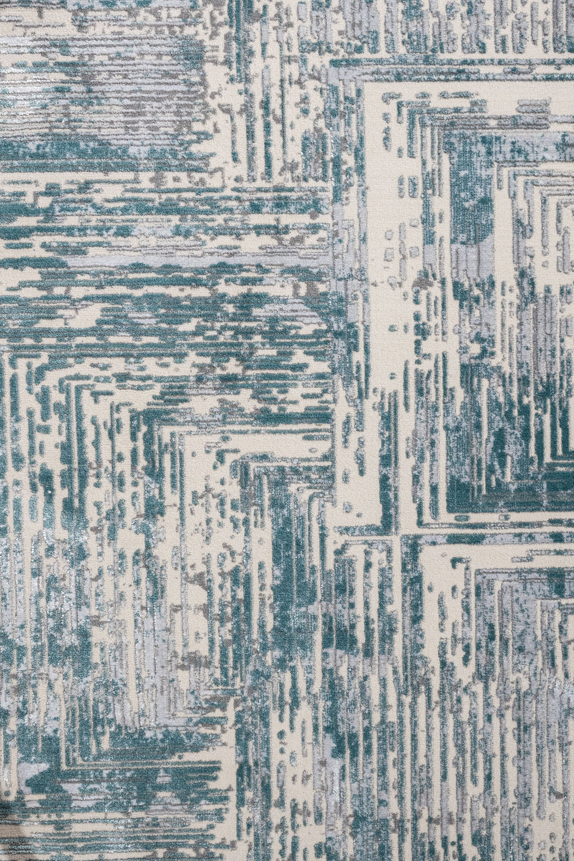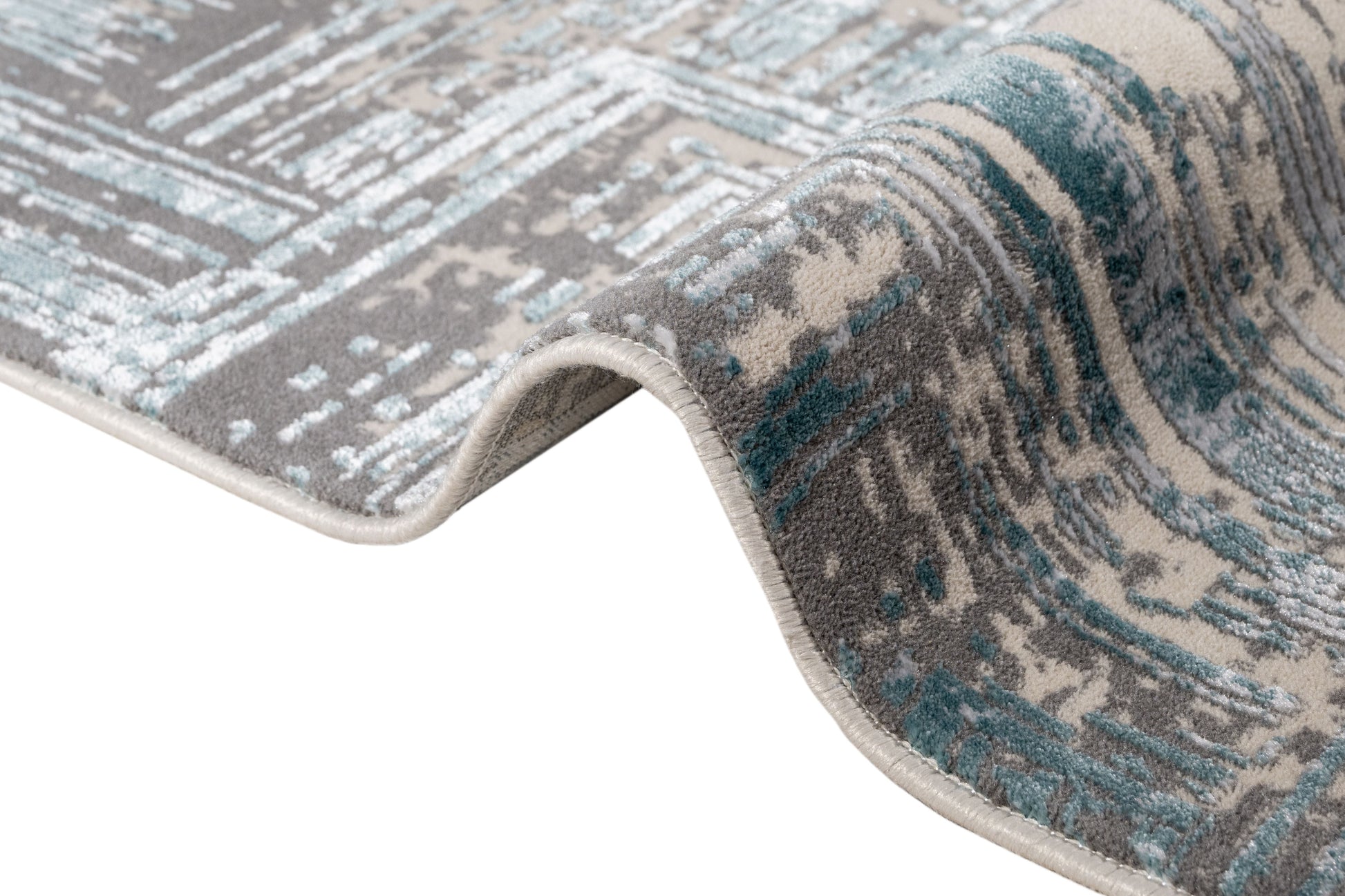 Modern Area Rug – Blue Beige Machine Made Rug with Cotton Base Carpet