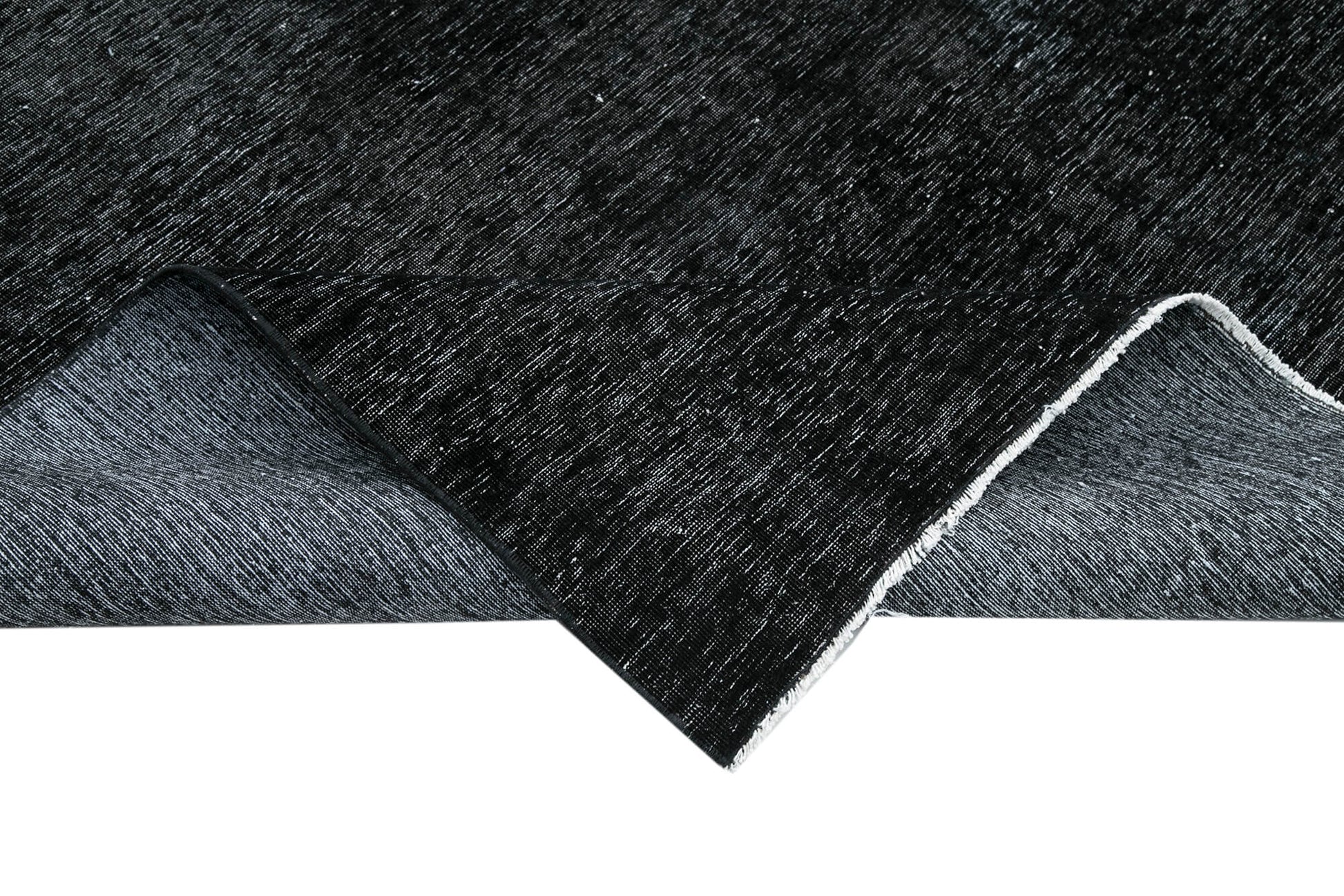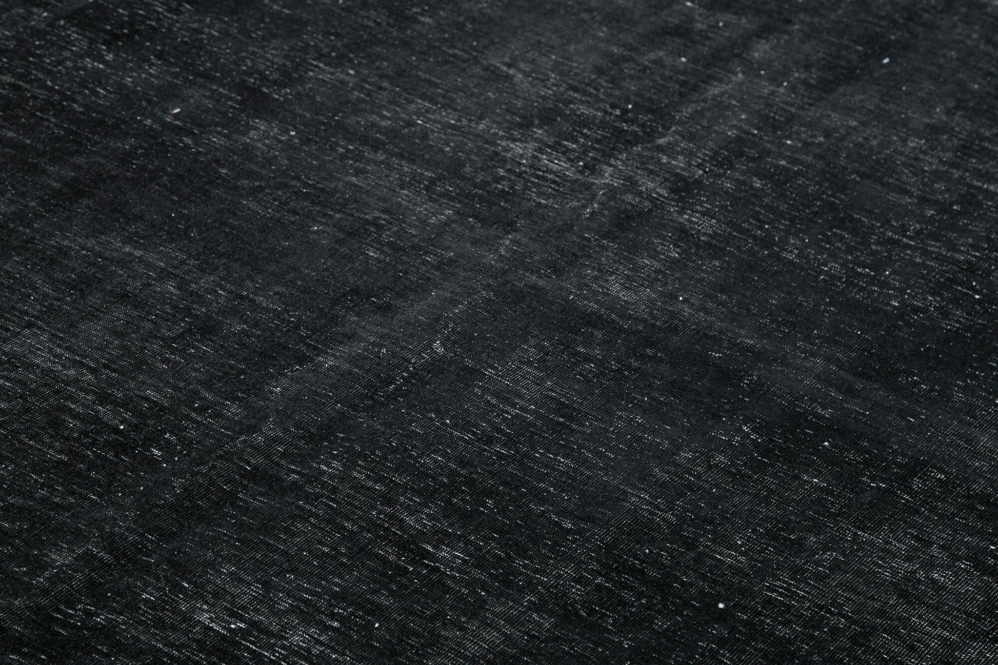 This vintage hand woven rug features traditional Turkish carpet techniques, including hand knotted craftsmanship that ensures superior durability and intricate detail. The black cotton rug material is carefully selected from high-quality wool and cotton, then cleaned and washed using special methods that neutralize original colors and subtly shift the shades to create a unique, classic wool carpet look.