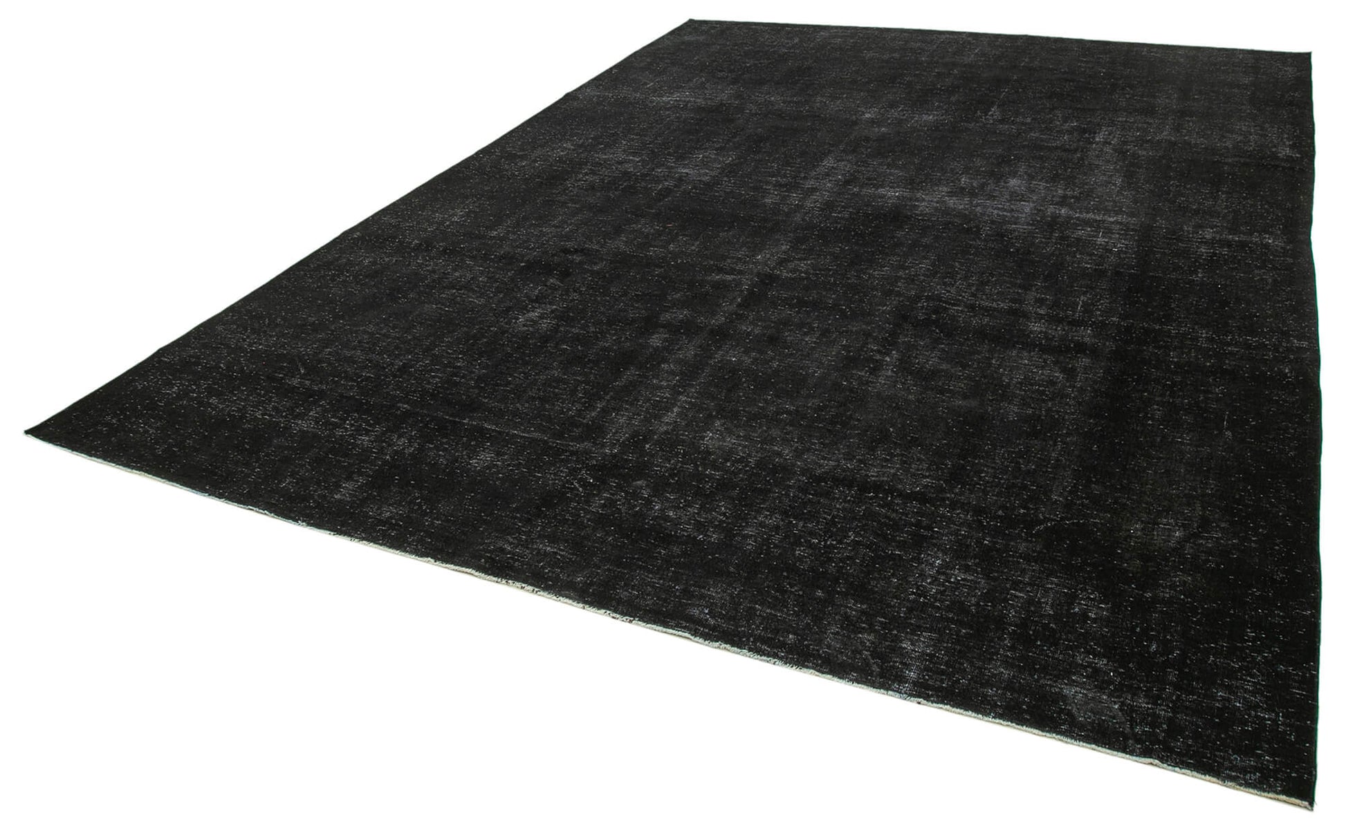 This handmade area rug is a stunning Persian black wool and cotton classic measuring 9'10''x13'1''. Designed as a vintage Turkish carpet, it brings timeless elegance and durable comfort to your living room rug setup. Crafted from natural wool material blended with cotton, this traditional hand knotted piece offers soft durable flooring that enhances classic style decor effortlessly. Each hand woven rug is carefully selected, cleaned, and treated using special washing techniques to neutralize and subtly shift the original color shades, preserving its vintage charm.