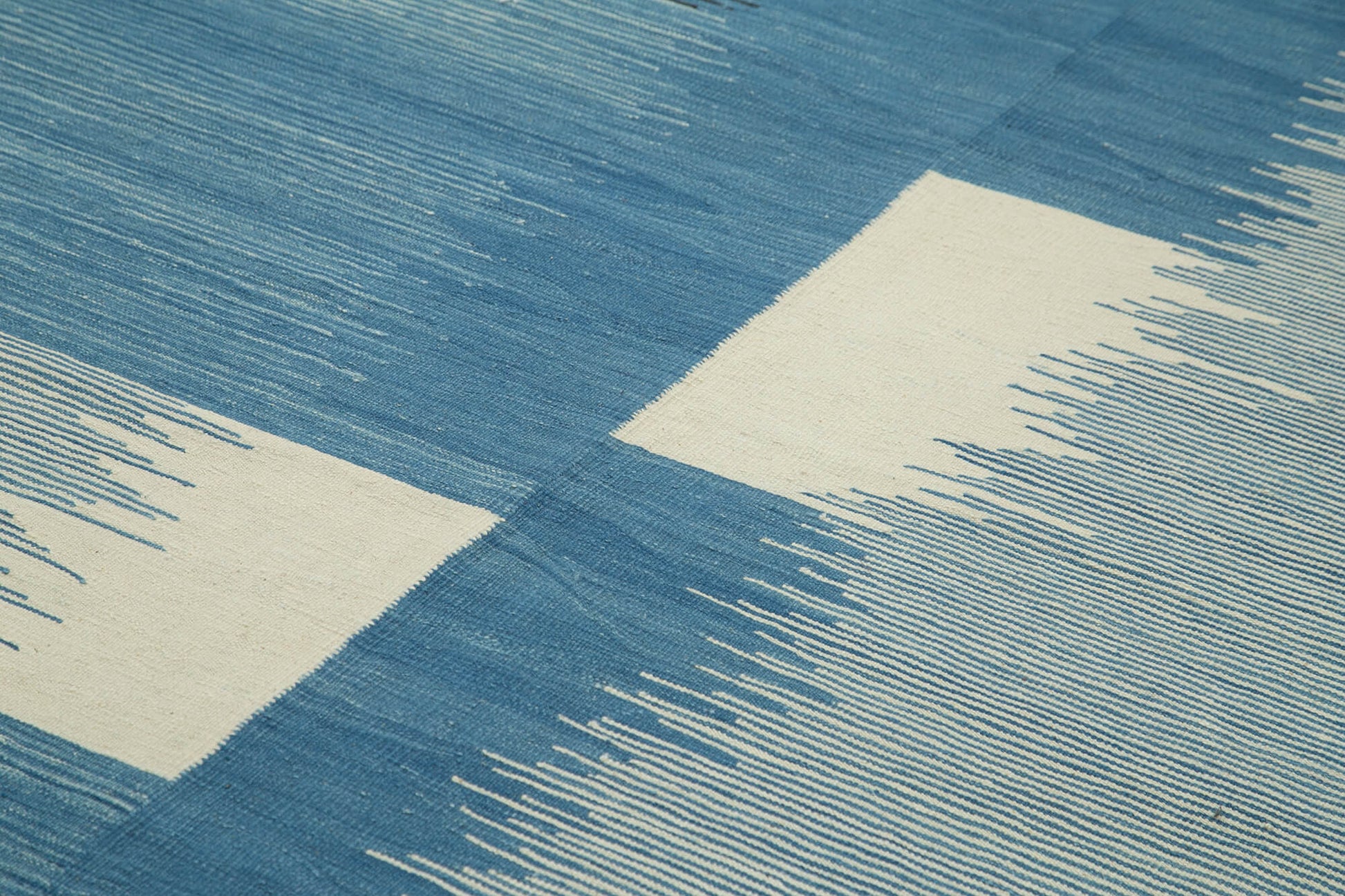 This handmade area rug is a stunning blue geometric cotton wool carpet measuring 7'3'' x 10'5'', designed to bring durable floor covering and timeless style to your living room. Crafted from soft natural fibers, this hand woven rug combines the tradition of vintage Turkish carpets with modern eco friendly practices, offering a unique blend of comfort and sustainability. Each artisanal woven textile is created using traditional hand knotted techniques that have been perfected over decades, ensuring a high-quality product that lasts.
