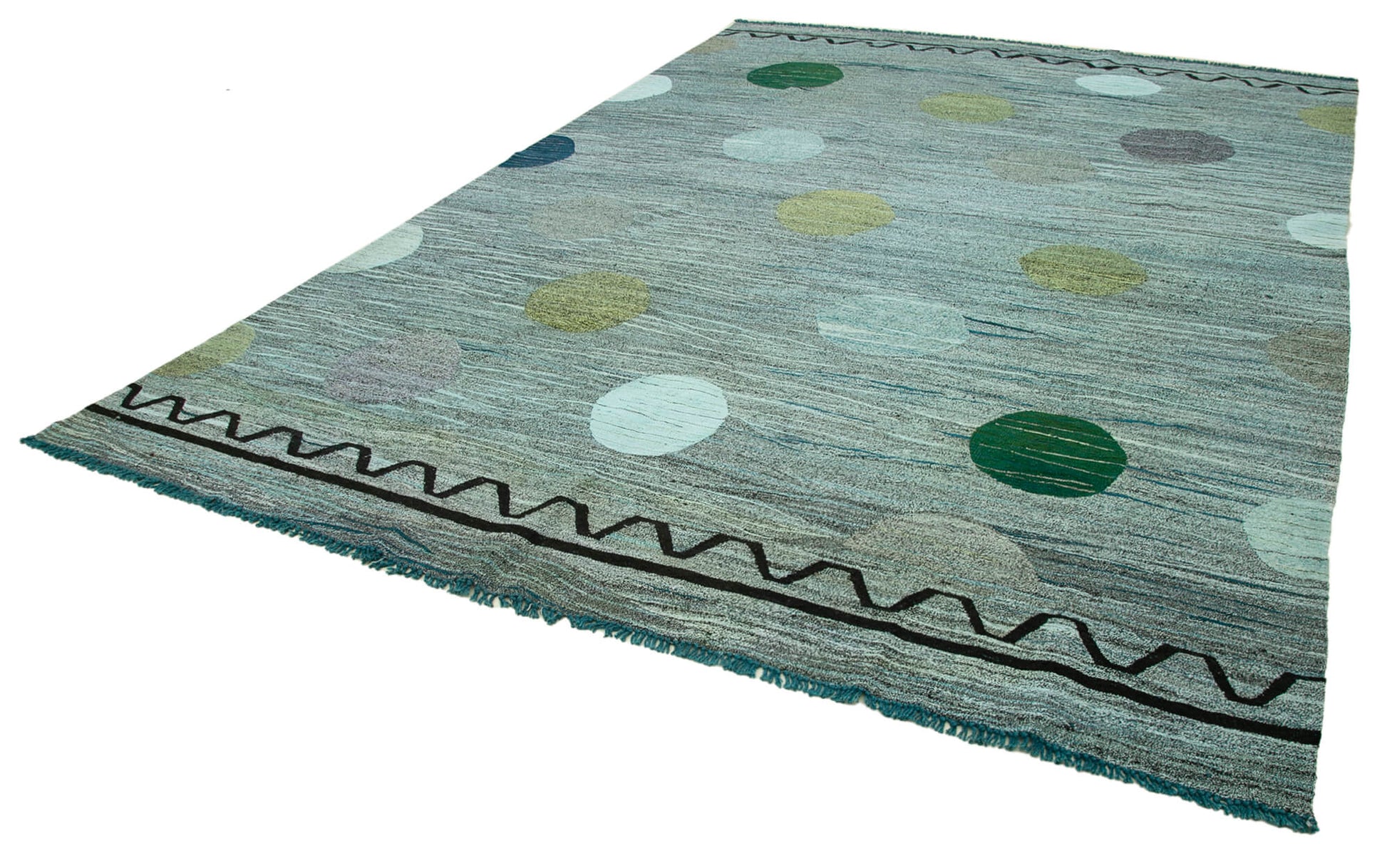 Handmade Area Rug - Turquoise Geometric Vintage Wool Cotton Carpet 10'1''x14'3''