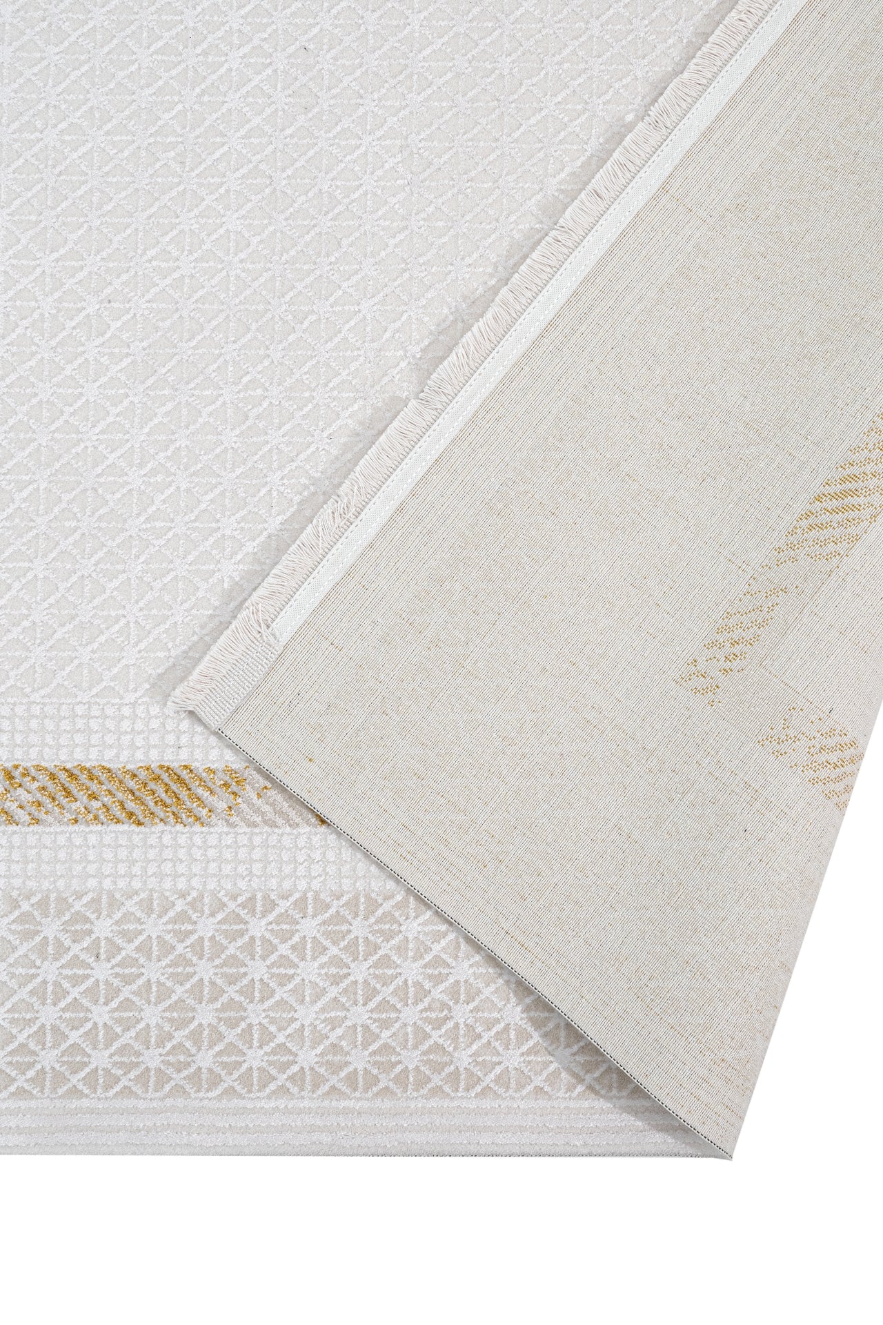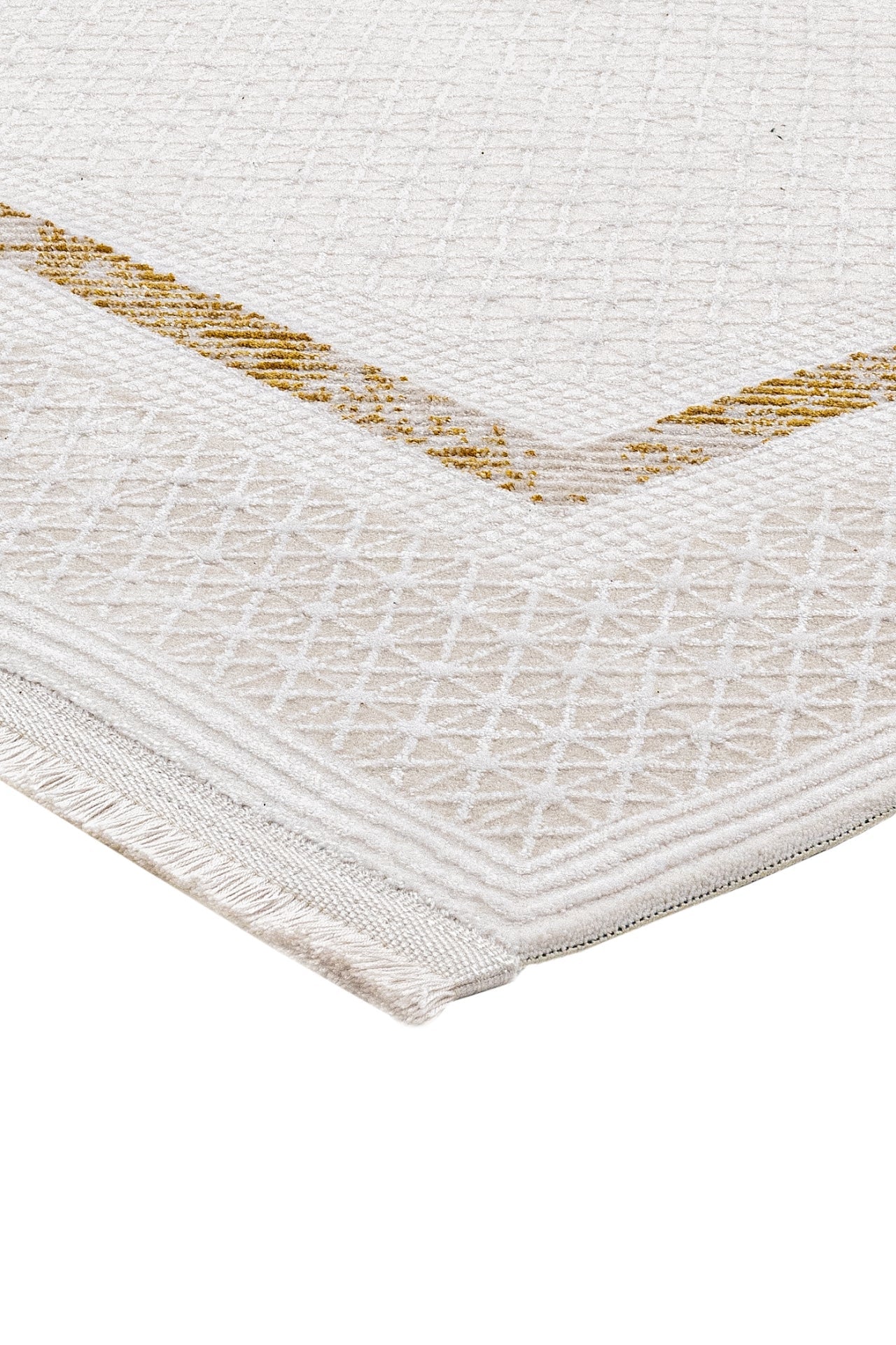 Gold Area Rug – Machine Made Rug with Laser Cut Fringe and 11 mm Pile Height
