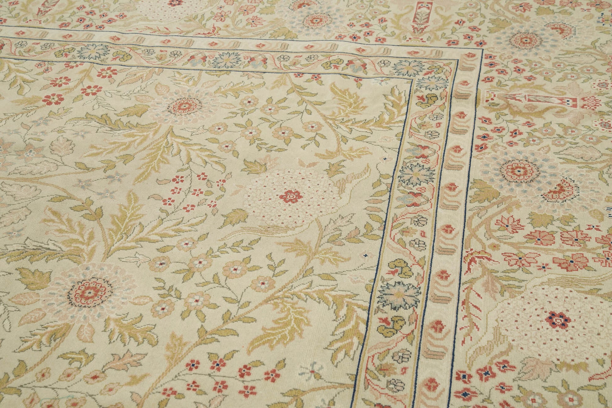Handmade Wool Area Rug – Tebriz Classic Cotton Rug 13'x16' Beige Turkish Vintage