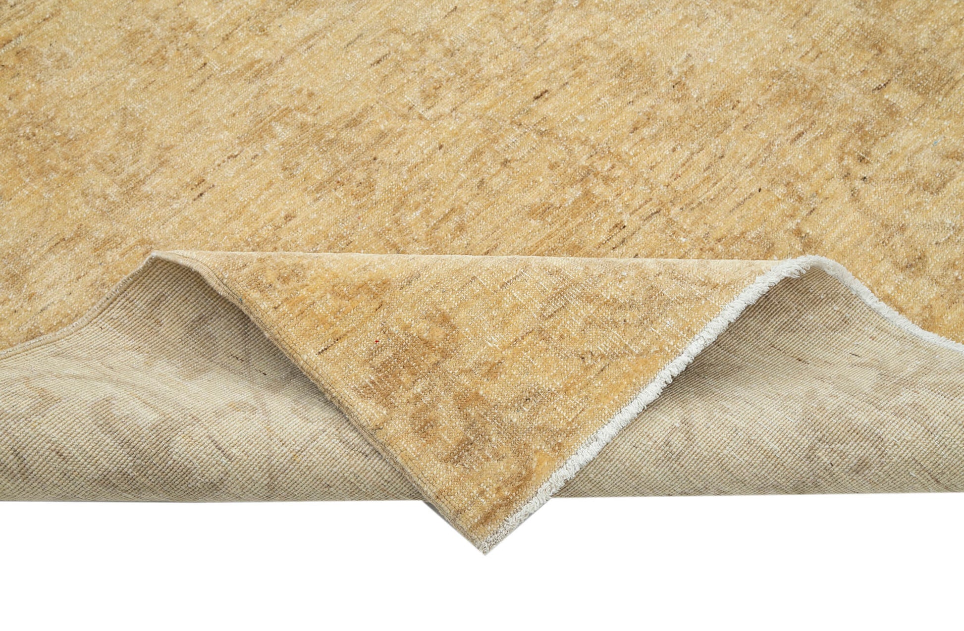 Each Turkish vintage rug is hand woven carpet made from carefully selected wool and cotton fibers, aged between 30 to 70 years, preserving authentic vintage charm. The classic yellow rug color has been expertly neutralized and enhanced using special washing techniques that refresh its original shades while maintaining its unique character. This traditional hand knotted process guarantees durability and a soft texture underfoot.