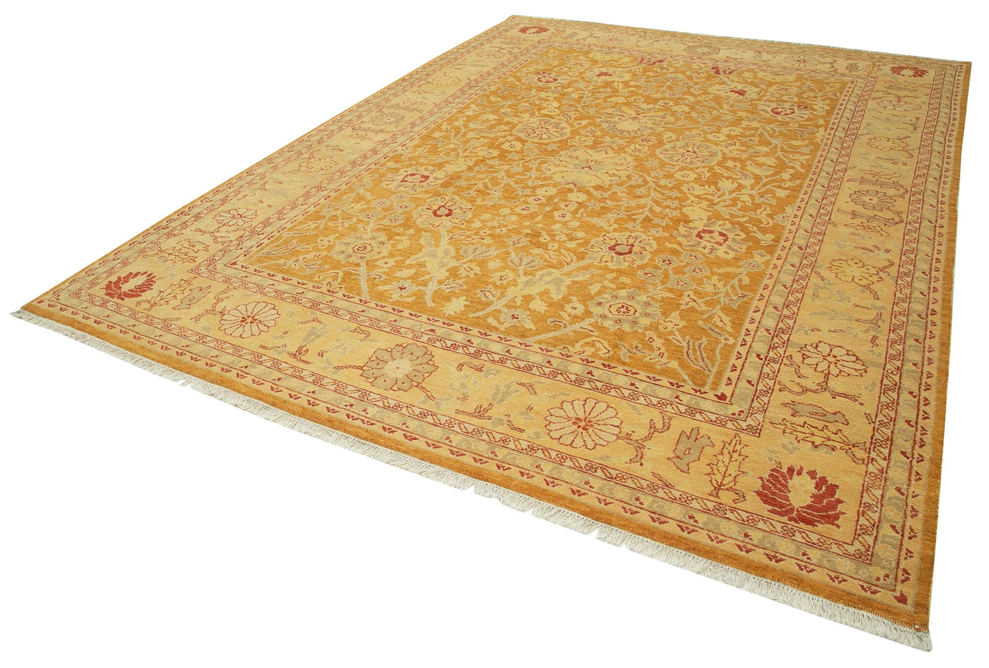 Handmade Wool Area Rug - Tebriz Classic Yellow Cotton Wool Carpet 9'x11'10''