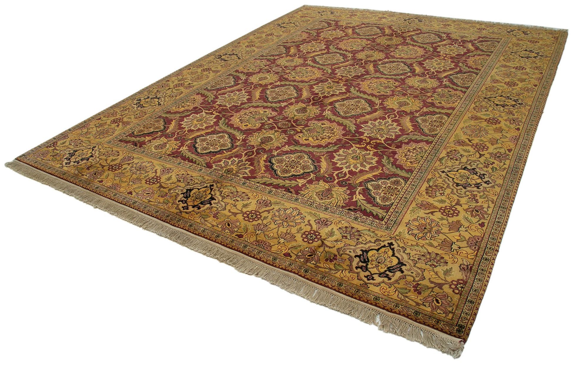 The Tebriz Yellow Classic Cotton Wool Handmade Area Rug 9'1'' x 12'0'' is a premium handmade wool area rug designed to add warmth and timeless style to your living space. Crafted from natural wool material and durable cotton, this hand knotted Turkish rug offers a soft cotton texture combined with the resilience of traditional wool carpet fibers. The vintage handwoven rug showcases a classic style rug pattern in vibrant yellow, perfectly sized as a yellow area rug 9x12 to fit large rooms or open areas. Each handmade vintage carpet is carefully selected, cleaned, and washed using special techniques that neutralize and enhance the original colors, ensuring you receive a unique woven area carpet with lasting beauty.