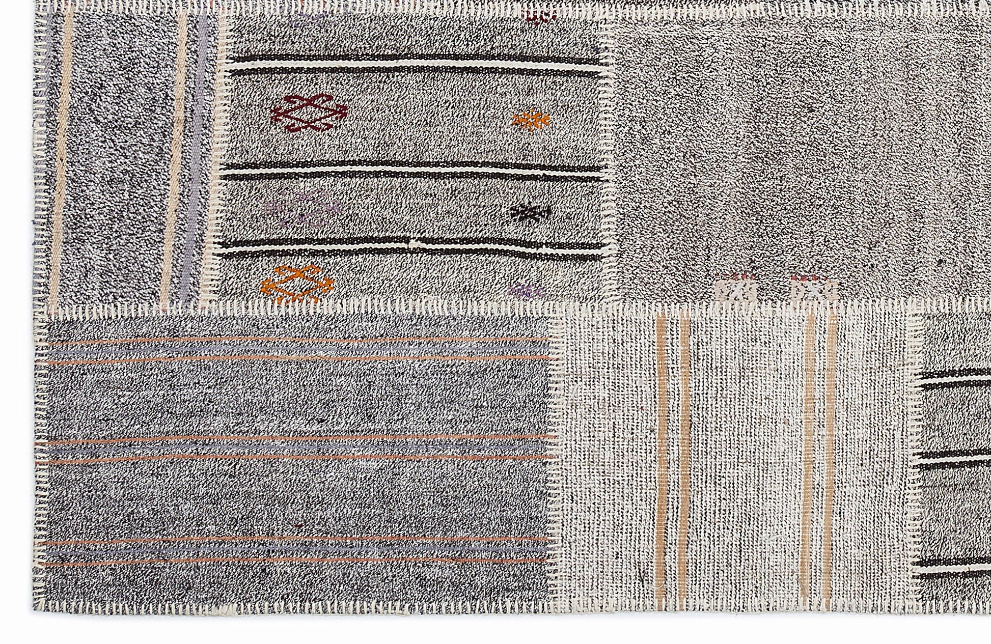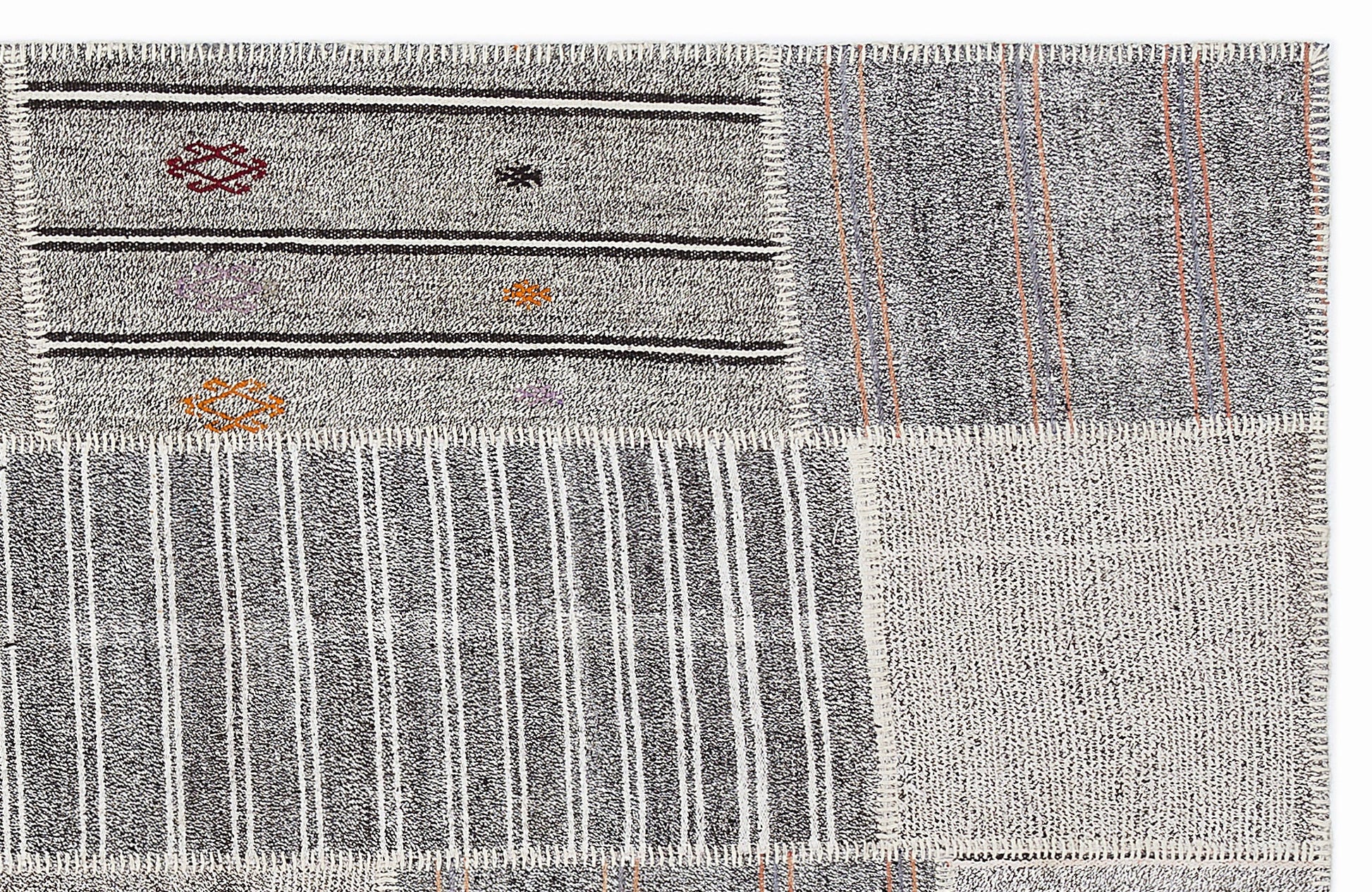 Teselya 1250 Grey Striped Wool Handmade Area Rug 5'3" x 7'7"